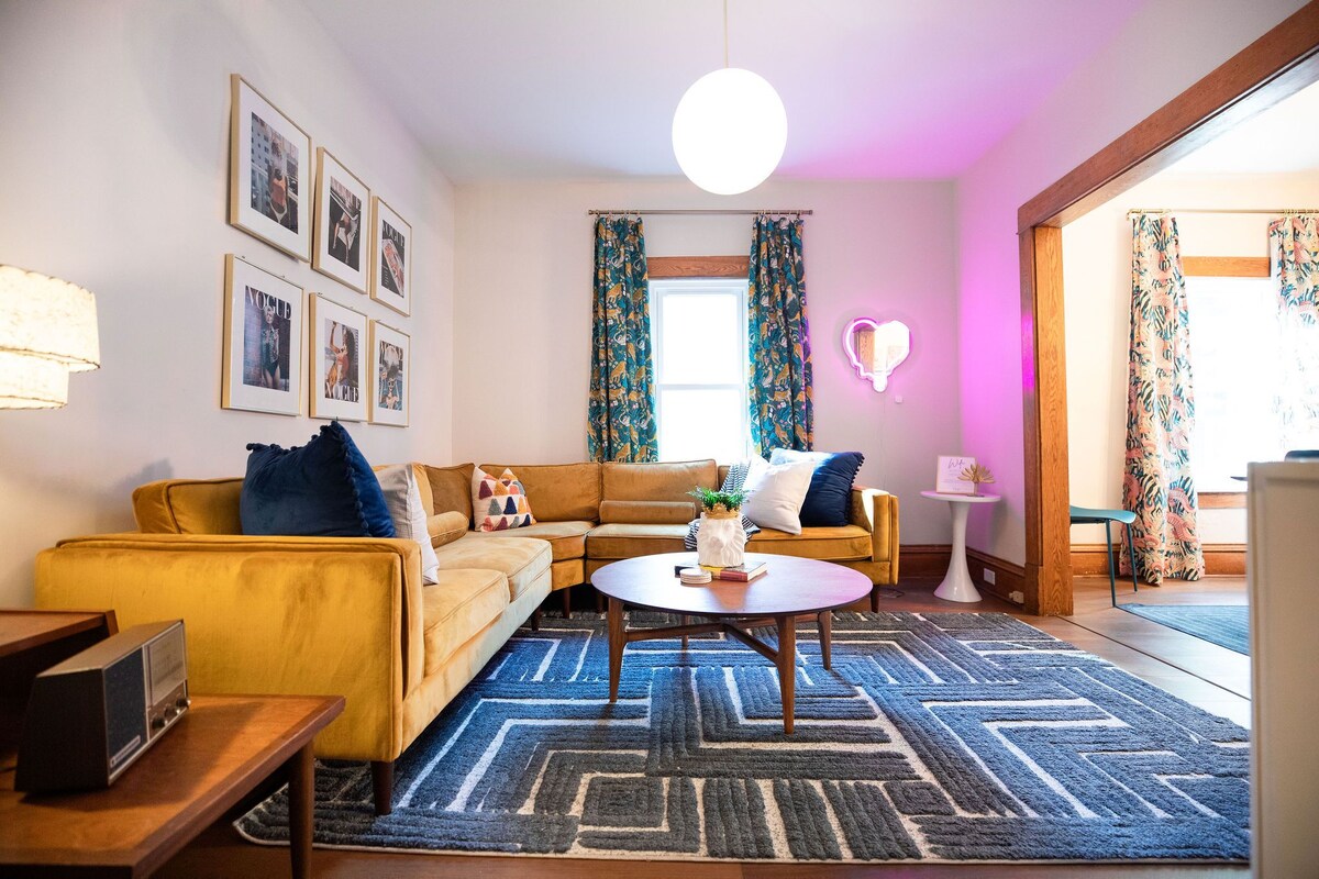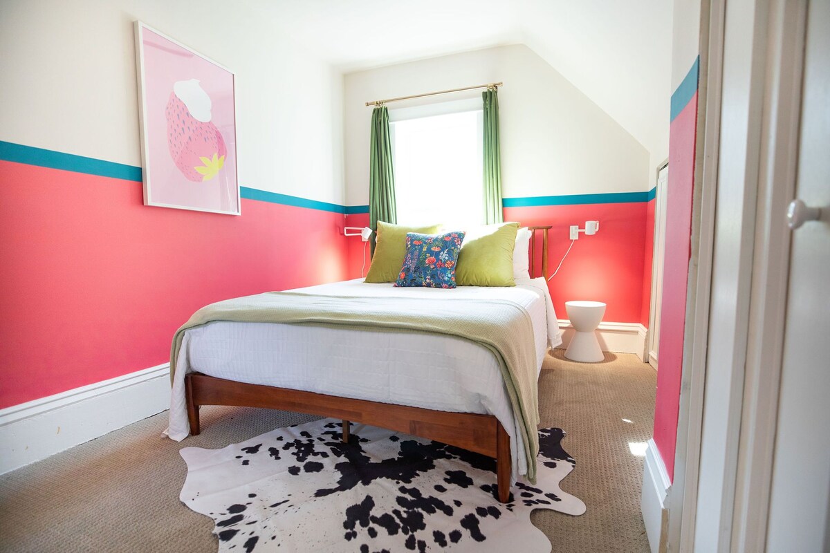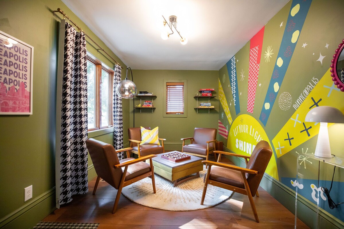 Stay in style at this 4 BR, 2.5 bathroom with eclectic décor and modern comforts, perfectly situated for exploring the best of the Twin Cities. The main level features a fully stocked kitchen, dining for 8, a cozy living room with a smart TV, and a sitting area with board games. The primary bedroom includes a king bed and half bath. Relax in the fenced backyard with outdoor seating. Centrally located near top attractions, this home offers a fun and convenient retreat for families or groups! The main level features a relaxing front sitting room with a custom hand-painted mural and board games, a private living room, a dining area, and a fully equipped kitchen with stainless steel appliances and a coffee bar. The spacious primary bedroom boasts a king-size bed, attached half bath, and patio access to the fenced backyard. Upstairs, find three additional bedrooms—two with queen beds and one with a twin—each featuring locking doors, clothing storage, and full-length mirrors. A full bathroom completes this floor. The pet-friendly backyard offers outdoor seating and yard games (available June–September), perfect for summer fun. Centrally located, The Hen House is minutes from the Mall of America, MSP Airport, Minnehaha Falls, Lake Nokomis Beach, and top stadiums. Experience comfort and convenience at this charming Minneapolis retreat! Our prices include all fees. No hidden fees.