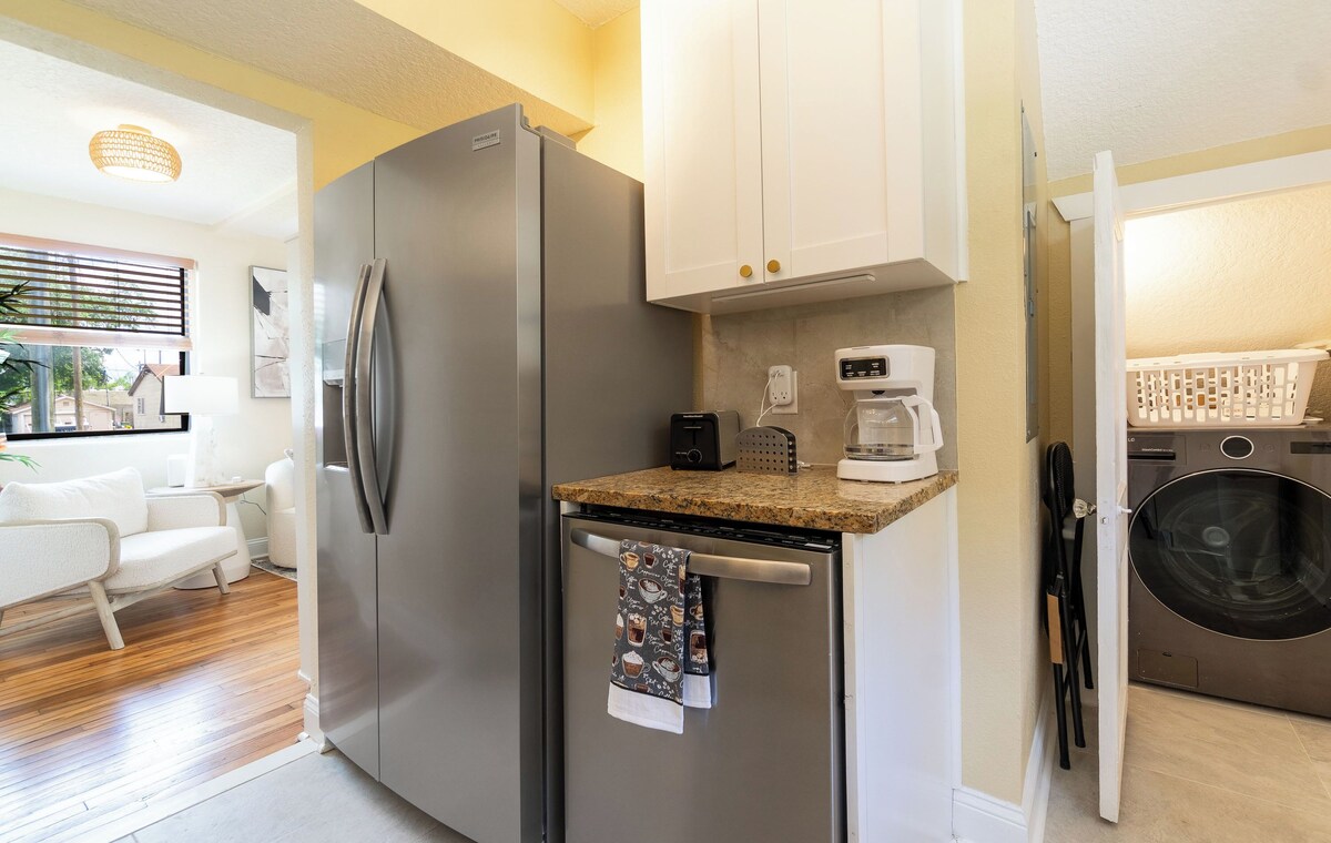 Escape to this welcoming and completely newly renovated unit in wonderful San Marco section of Jacksonville FL. With 2 cozy bedrooms featuring a king and queen bed, guests can relax in style. WiFi, AC, 3 smart TVs. New kitchen and appliances, dining table & chairs, along with washer/ dryer. Front porch with screened in pergola, tiled back patio, shed in back for storage, Long concrete driveway plus a paver driveway on other side. The tranquil atmosphere of this property pairs well with being easy walking distance to San Marco shops and cafes. It's easy to see why you'll be able to unwind at our place. Our prices include all fees. No hidden fees.