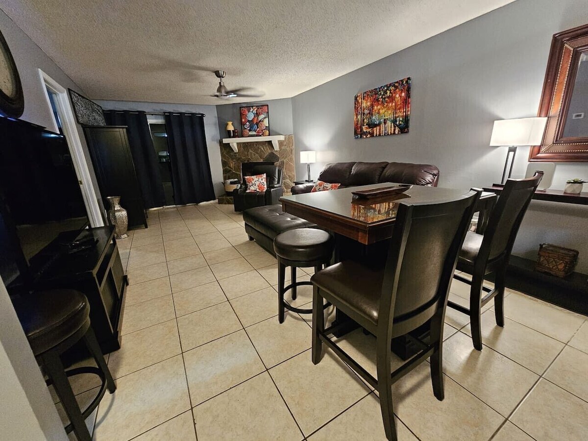 Spacious 2BR/2BA condo near I-295 in Mandarin Glen. Sleeps 5 with queen bed, full + twin trundle, and pull-out couch. Includes Roku TVs, fast WiFi, massage chair, board games, and pool access. Next to Publix, Starbucks, and top dining. Near parks, downtown, all-you-can-eat sushi, and more. Pet-friendly and perfect for families, work trips, or weekend stays. Ring Doorbell security, cozy reading nook, and free coffee & tea included. Quick drive to Target, Whole Foods, Baptist South, and Urban Air. Our prices include all fees. No hidden fees.