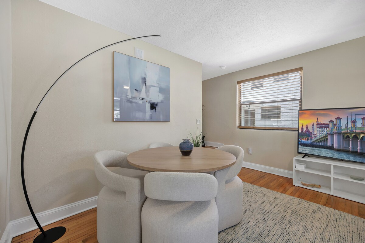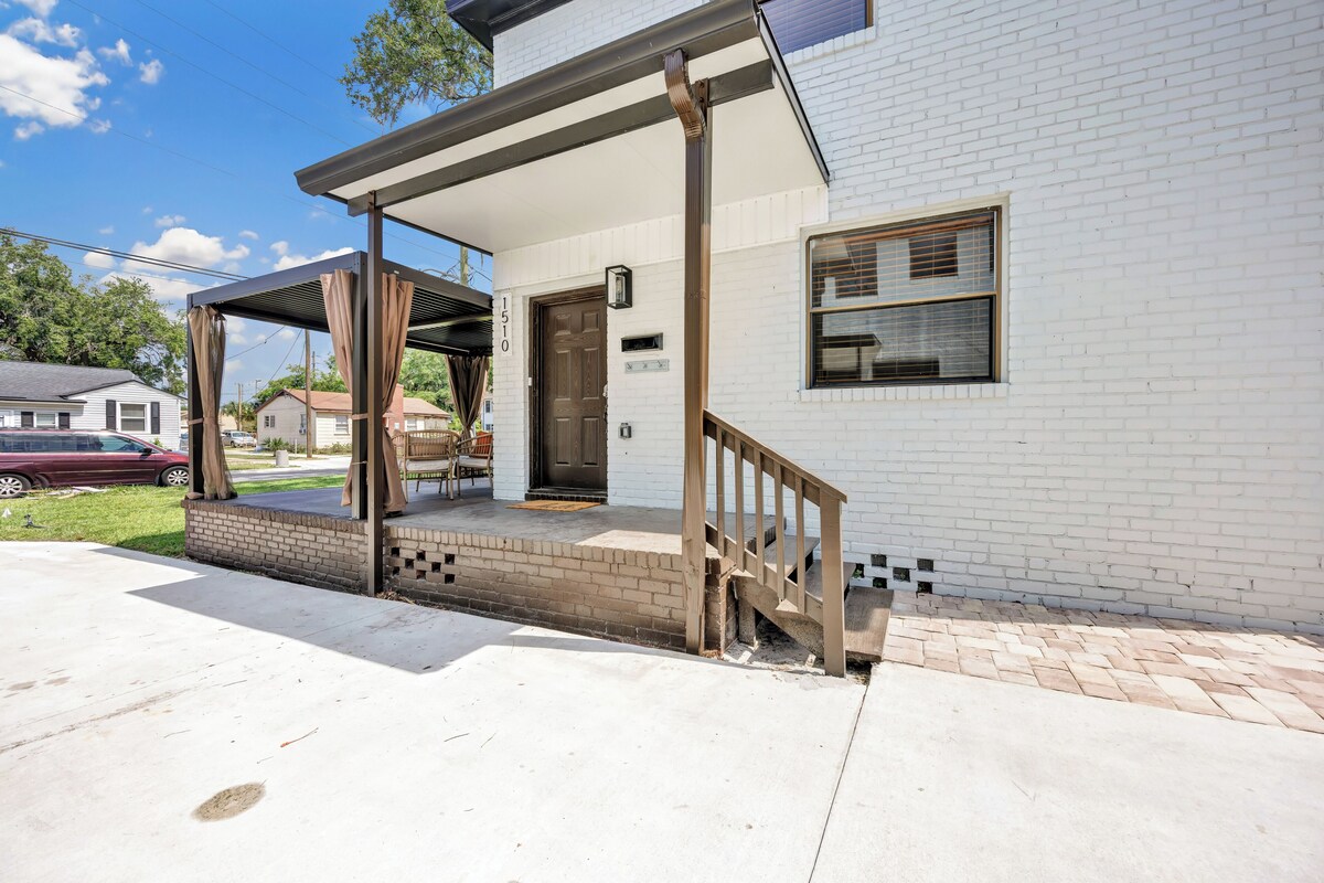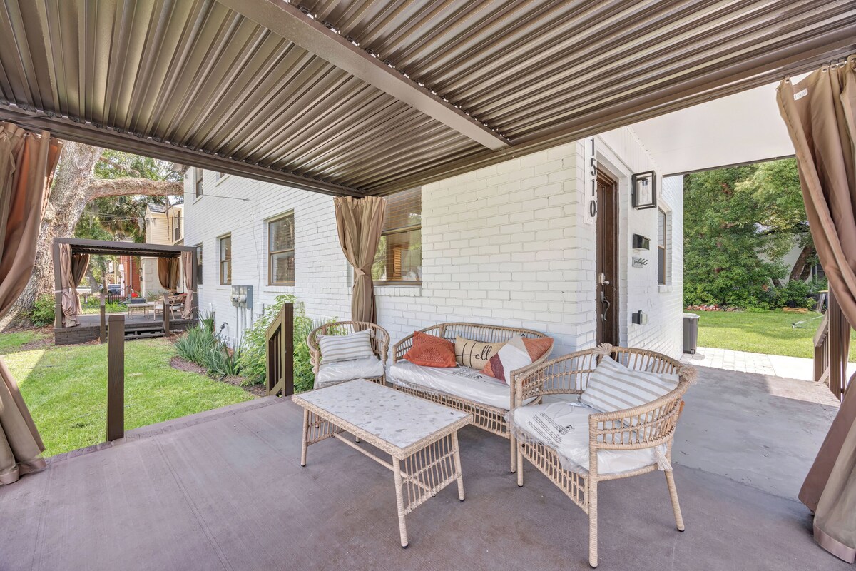 Nestled in San Marco section of Jacksonville, this newly renovated house features 2 cozy bedrooms - one with a king bed and the other with a queen bed. The property also boasts 2 lovely bathrooms, including a bathtub for a relaxing soak. With a spacious living room and a sofa bed for extra guests and functional kitchen, this house is perfect for a family getaway or a weekend retreat with friends. House has new everything -- 3 Smart TVs, fast Wifi, air conditioners. kitchen appliances & washer/ dryer, tankless water heater Also a front porch with covered pergola and outdoor furniture, back patio, sizeable yard, new driveway to accommodate at least 2 vehicles, and storage shed in the back. Book now and enjoy everything this house has to offer! Our prices include all fees. No hidden fees.