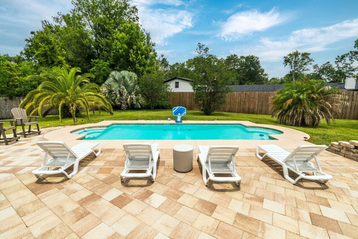Property Highlights: • 3 Bedrooms, 2 Bathrooms • Fully stocked kitchen • Smart TVs in all bedrooms • Open living & dining area • In-unit washer & dryer • Pet-friendly! Outdoor Features: • Half acre lot (great for pets!) • Large private pool w/ basketball hoop • Outdoor TV & dining area • Tons of comfy seating • Charcoal grill • Beautiful landscaping • Fully fenced yard We’re happy to host you and want every guest to enjoy a relaxing and peaceful stay. Please note that this is not a party house. We do not allow large group gatherings, loud music, or unregistered guests beyond the number listed in your reservation. This home comfortably accommodates up to 6 guests, and additional visitors must be approved in advance. To ensure a respectful environment for our neighbors and future guests, any violation of these rules may result in guests being asked to leave the property immediately without refund. Thank you for your understanding and cooperation! Location Perks: -Beaches • Jacksonville Beach: Approximately 4.5 miles (10 minutes) • Neptune Beach: Approximately 6 miles (15 minutes) • Atlantic Beach: Approximately 6 miles (15 minutes) - Medical Facilities • Mayo Clinic Florida: Approximately 3.5 miles (10 minutes) • UF Health Jacksonville: Approximately 18 miles (25 minutes) - Educational Institutions • University of North Florida (UNF): Approximately 5 miles (12 minutes) • Florida State College at Jacksonville (South Campus): Approximately 9 miles (15 minutes) - Downtown Jacksonville • Downtown Jacksonville: Approximately 15 miles (20 minutes) -Shopping & Entertainment • St. Johns Town Center: Approximately 8 miles (15 minutes) - Parks & Recreation • Kathryn Abbey Hanna Park: Approximately 10 miles (20 minutes) • Castaway Island Preserve: Approximately 2 miles (7 minutes) Guests will have access to the entire house and yard. Please be respectful of the neighbors. Loud noise is prohibited after 10:00pm and before 9:00am per City Ordinance enforced by the local authorities. Failure to adhere to city ordinances will result in immediate eviction. NO STREET PARKING! The driveway has space for 4 cars. This home is centrally located in a prime area—just minutes from Mayo Clinic, UNF, and the beach. Please note, it's on a busy, high-traffic road, so you may hear traffic noise while outside and occasionally indoors. We’ve provided white noise machines in the bedrooms to help ensure a restful night’s sleep. Refund Policy All refunds are subject to a non-refundable 3.9% processing fee (per Stripe’s policy). To ensure you will have a 5-star experience, we require a rental agreement to be signed upon booking. The agreement will need to be signed before check in information is provided. We’re happy to host you and want every guest to enjoy a relaxing and peaceful stay. Please note that this is not a party house. We do not allow large group gatherings, loud music, or unregistered guests beyond the number listed in your reservation. This home comfortably accommodates up to 6 guests, and additional visitors must be approved in advance. To ensure a respectful environment for our neighbors and future guests, any violation of these rules may result in guests being asked to leave the property immediately without refund. Thank you for your understanding and cooperation! ✅ Please review the house rules. ✅ Max guests: 6. Extra guests need approval. ✅ Check in is 4pm & Check out is 10 am Our prices include all fees. No hidden fees.