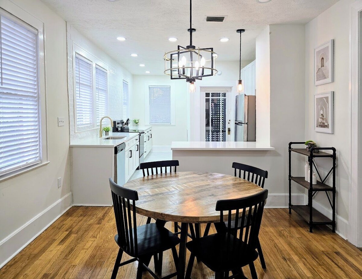 Modern, family-friendly apartment in historic Avondale, Jacksonville. Features a bright open layout, full well-stocked kitchen, smart TV in bedrooms and living room, fast Wi-Fi, and peaceful screened-in balcony—perfect for morning coffee or evening unwinding. Professionally cleaned and thoughtfully maintained. Walk to Boone Park, boutiques, local cafés, and Five Points. Ideal for couples, families, or business travelers seeking a quiet, stylish stay in a charming, walkable neighborhood. Our prices include all fees. No hidden fees.
