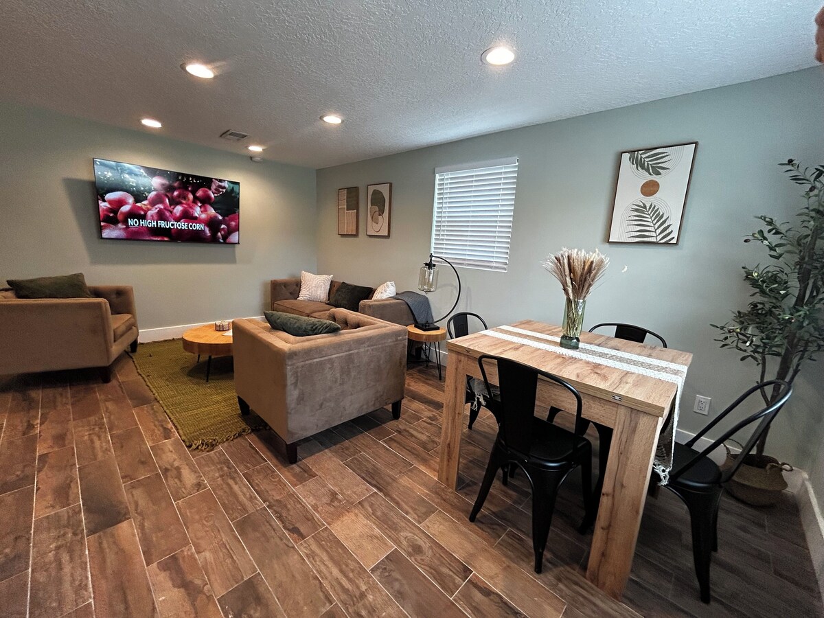 Come stay at this centrally located, family friendly Inland Escape. Featuring a modern kitchen with granite countertops, a fully fenced in yard for Fido and in-unit laundry, this unit offers all the conveniences of home. You can be downtown, shopping, dining, at the beach, or various local hospitals, all within just a few minutes. Pets welcome. Our prices include all fees. No hidden fees.