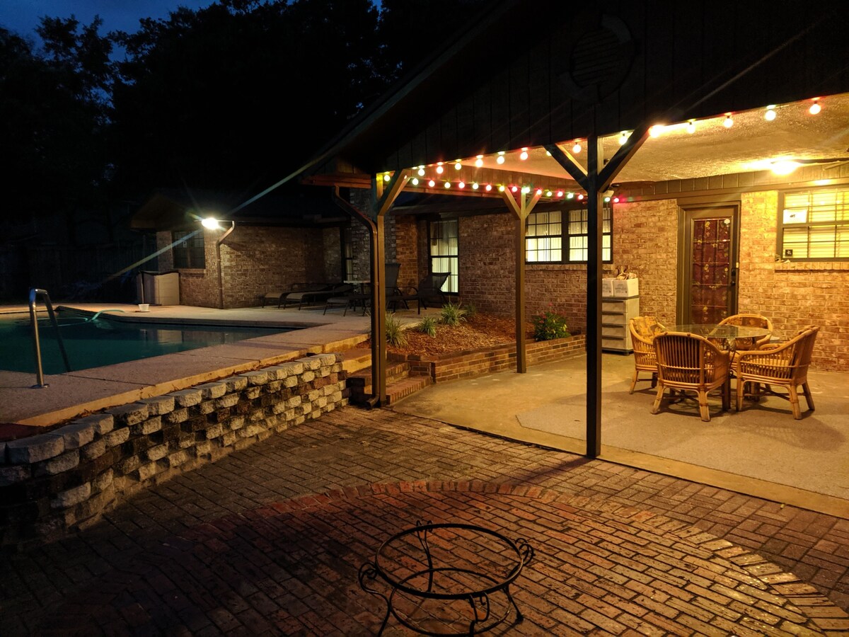 Large sprawling 4 bedroom home with a lot of amenities: 25,000 gallon salt water pool, large covered patio and patio deck, fire pit and inside theater room. The first thing that you notice when you walk in this house, is that you feel like you are in a comfortable home, your home, not a rental. It is a beautiful, relaxing home that will immediately put you at ease after a day of work or travel. You are in a peaceful, quiet, safe established residential neighborhood. You will see neighborhood children outside playing in their front yard. There aren't any cars speeding up and down the street. Neighbors are quiet and friendly. Many have lived there their entire lives. The home is perfectly set up for entertaining either inside or out, or just have a quiet relaxing day by the pool. No worries, the entire back yard is enclosed with a privacy fence. The backyard is the place to relax is almost any season. The patio sees sun from sunrise to sunset. There are 4 lounge chairs for use to lay out in the sun, or you can stay in the shade under covered part of the patio where there are 4 chairs and a patio table. Bring your bikes. We are located 2 miles from the Jacksonville Baldwin Rail Trail for a nice bike ride, walk or jog. We also have another property nearby, on a creek, with kayaks. Just tell us in advance so I have these ready and available for use at that location. The pool is open year-round, but most comfortable March through November. Spend the day on the laying out on the -deck or swimming in the pool. Build a fire in the fire pit and grill out. Most of the time we have available firewood to have a fire in the fire pit. You can grill on the charcoal grill or try out the \ grill. Inside, one of the bedrooms has been setup as a 9-seat theater room, for a \ or football game. This room does have a folding couch and a sliding door for privacy, if it is to be used as a bedroom. Inside the hallway closet, there are board games, Battleship, Monopoly and others. There are also plenty of DVDs from all periods, for you to view. This home has a formal Dining Room, which make it great for a special dinner with guests, or even business travelers have held meetings in that room. The Living room and Front Entrance area, have 3 pullout, queen size, couches for additional sleeping options . There is extra linens in each closet. The electronics are as follows. The internet is XFINITY and the TV use a Direct Stream TV subscription which is found using the Roku box. We also have local channels on some of the TVs. Feel free to \ if you have another subscription service, that you prefer to use on the availabkle Roku Ap Menu. All bedrooms have a TV with a Roku box. The theater room TV has a Roku box and has Smart DVD/BluRay player. There is stereo receiver in the Theater Room. The Living Room TV, has a sound bar. We are right off I10 and 295, which makes travel quick and easy to all Jacksonville and surrounding locations. Jacksonville Beach is about a 35 minute drive. We have a lot of visitors who come into town for Jags games, FL/GA game and concerts. They all seem to like the easy accessibility to downtown Jacksonville and is not a far ride for Uber or Lyft. If there is a place you will be going to visit, please let me know, and I can give approximate distance and travel time. I hope that you decide to stay, and I am even more excited when I have a repeat guest. Please ask any question if there is something which I did not provide. Our prices include all fees. No hidden fees.