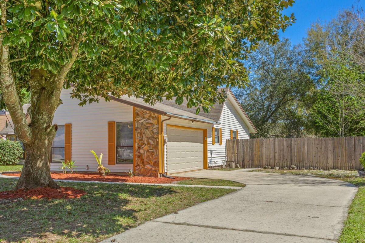 Welcome to Blue Heron: a pet-friendly 3BR/2BA retreat ina quiet cul-de-sac, perfect for work trips, family visits or a golf getaway. This fully fenced home sleeps 6 with queen beds in the master and second bedrooms, a full bed in the third, plus a sunken living room with Smart Roku TV, dedicated workspace and high-speed WiFi. Cook in the fully stocked kitchen, gather on the screened porch or fire up the charcoal grill in the private backyard. Enjoy complimentary bikes, free parking, laundry facilities and board games for indoor fun. Minutes from top golf courses, Blue Crab Crabhouse, Publix and the scenic St. Johns River, with easy access to Jacksonville Beach and TPC Sawgrass. Ideal for business travelers, golf aficionados, families and dog lovers — book now and make Blue Heron your home away from home! *Sunken living room means there is a step down and step back up! This location is minutes from grocery shopping & restaurants - and convenient to a variety of other area attractions. Some amenities noted are nearby - an additional fee may be required. Golf, Boat Rental, etc. **Parties are strictly prohibited - as noted in the rental agreement. Penalties will be enforced. The property is monitored by Noise Aware as noted in the booking agreement. **Charcoal is not provided. Firewood is not provided. Interior fireplace is not available for use. Basic cooking items - pots & pans and dishware are provided for our occupancy of 6 guests. ARRIVAL & DEPARTURE Guest Arrival is anytime 4pm EST or after. If the property is approved for early arrival, you will receive a message letting you know you can arrive early and we will activate the door code. If you do not receive a message, then the arrival will remain at 4pm EST. Guest Departure is anytime 10am EST or before. If you have not departed by this time and do not have written prior approval for a late departure, you will be assessed a $50 late departure fee for every 30 minute delay. The Cleaning Services we use schedule their teams for multiple cleans in advance and any unplanned delays create issues. With unscheduled/unapproved late departures, they are required to bring in additional team members to assist, which incurs a higher cost that must be charged. Any requests made for a late departure must be made a minimum of 24 hours in advance of departure time and are subject to approval/availability. Our prices include all fees. No hidden fees.