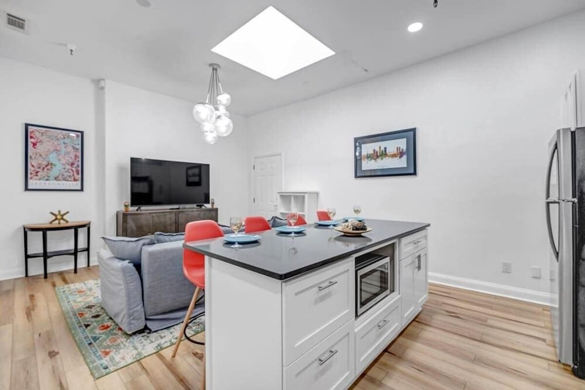 Summary: We recently refreshed this apt to harken back to your favorite plumber themed NES classic. If you're a Mario, Luigi, or Princess Toadstool (we don't enjoy hosting Bowsers) this is the perfect spot for you! Yoshis are welcome too. :) You’ll be steps from restaurants, coffee shops, and an axe throwing venue! This apt is next to a busy intersection so you will experience road noise. This is a wonderful yet developing urban neighborhood. Also, large vehicles are not recommended for guests at this property. The parking lot is relatively small / crowded and large vehicles parking here make it difficult for other guests to get in and out of the parking lot. There is nearby street parking available for larger vehicles but it will not be in the gated area. The Space: Guests have access to the entire 2 BR / 1 BA apartment with a brand new kitchen, bathroom, tankless hot water heater, and fresh paint, lights, ceiling fans, barn-door style closet doors, and new bedroom and living room furniture, including a new 65\ TV in the master bedroom. The master bedroom features a brand new king-sized bed complete with memory foam mattress, a night stand, a chest of drawers, a desk for work, and a closet. The 2nd bedroom features a queen-sized bed, nightstand, chest of drawers, and a closet. The living room includes a sleeper sofa, an island with bar stools. The generous kitchen is stocked with utensils, a microwave, coffee pot, toaster, refrigerator/freezer, oven/range, cooking utensils/cutlery and plates. The freshly renovated bathroom has a sumptuous walk in shower with glass door supplied with towels, and shower items (body wash, shampoo, conditioner). Guest Access: Guests have access to in unit laundry and gated parking - limit 1 car per guest in the gated parking area due to its size The Neighborhood: Springfield is amazing! It is a diverse, vibrant, up and coming neighborhood located just north of Jacksonville's downtown. You'll initially fall in love with the gorgeous late 19th/early 20th century houses but you'll want to stay for the amazing people. Join a First Friday party, check out the weekly Main Street cruise, downtown's Art Walk, Porchfest if you're in town in the fall, or one of the yearly home tours. A few recommendations: Restaurants Crispy’s is a half block away and famous for delicious pizza and great pub food in general Wafaa and Mike’s Cafe is 2-3 blocks to the south and known for delicious Mediterranean food Uptown Kitchen and Bar is ~5 blocks to the south and perfect for delicious breakfast lunch and dinner - one of the most popular traditional Tommy’s is approximately a half mile to the southeast and is known for Springfield’s famous $3 breakfast in a cup Sweet Pete’s (as featured on MSNBC's \ ) is about 3/4 mile to the southwest for delectable brunch and sinfully delicious sweets; Pete also happens to be a historic Springfield resident so you may very well see him and his family walking their dog around the neighborhood Coffee Social Grounds coffee shop for the best (not joking - seriously amazing) locally roasted coffee in Jax Drinks Hyperion - craft brewery 1 block away Historically Hoppy - craft brewery 2 blocks away Strings Sports Brewery - craft brewery with delectable dishes 1 block away Crispy's - fully stocked bar with lots of TVs for sports events, dart boards, and an upstairs area great for larger groups that is half a block away Uptown Kitchen and Bar - fully stocked bar with TVs that are usually playing sports games that is a few blocks away on Main St Getting Around: Springfield is a great neighborhood for walking and biking! Jacksonville's Skyway, with limited service around the Urban Core area is a half mile to the south and is co-located with Jacksonville's central bus station. Ride sharing services are also great options as well and driving is preferable for areas well outside of central Jax (St Augustine, Brunswick, Gainesville, etc.) Other Things to Note: PLEASE CONTACT US PRIOR TO BOOKING IF YOU WOULD LIKE TO REVIEW RENTAL AGREEMENT. We charge for additional guests above a fixed amount. This amount and additional charge varies by unit type, size, and configuration. If you input the correct guest count when you make your reservation the amount the booking site indicated as the total cost will not change (due to guest count). We ask for confirmation of guest count after you complete your booking. If you need to increase your guest count after booking confirmation due to a booking error, this could result in a price increase. Finally, we verify guest count via external cameras located on our properties. In the event that we notice a guest count at the property that is higher than reported, we reserve the right to ask for additional guest fees that would be double the amount we would have charged prior to check-in. Kindly refer to the following guidelines regarding fees for extra guests: Studio & 1 BR units - $25 per guest/night after 2 guests (i.e. 3 guests would be $25/night extra and 4 guests would be $50/night extra) 2 BR units - $30 per guest/night after 4 guests (i.e. 5 guests would be $30/night extra and 6 guests would be $60/night extra) 3 BR unit - $35 per guest/night after 6 guests (i.e. 7 guests would be $35/night extra and 8 guests would be $70/night extra) 4 BR units - $40 per guest/night after 8 guests (i.e. 9 guests would be $40/night extra and 10 guests would be $80/night extra) 5 BR+ units - $45 per guest/night after 10 guests (i.e. 11 guests would be $45/night extra and 12 guests would be $90/night extra) We are pet friendly and charge $30 per night per pet for short term stays. For longer stays, we charge $150 per week and $300 per month per pet. This fee is not included in the accommodation fare rate. We will send a request for the additional funds once the number of pets is confirmed after booking. PLEASE ENSURE YOU INDICATE THE CORRECT NUMBER OF GUESTS IN YOUR RESERVATION. We charge for guests over a set amount so if you indi