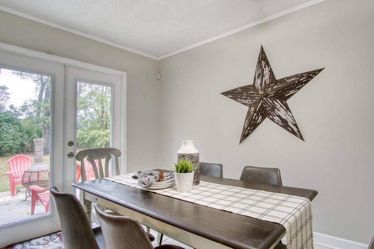~Candy Apple Plush Pad_Sleeps 10_Trains & Shops~ Guest Screening by Know Your Guest Waxed & polished, this Candy Apple Plush Pad would make ol' Johnny Appleseed a very happy traveler indeed! Replete with 1 King, 2 Queens, 1 Twin, & 1 Sofa bed. As a bonus feature, guests young and young-at-heart are apt to appreciate the friendly choo choo as it whistles along nearby. Take a crisp bite here without spending your whole bushel on the trip. We are on a mission to provide quality for our guests. If you have questions prior to your trip, we are happy to help you 7 days a week. During your stay, we will be available 24/7 to answer any questions or issues. We have a team of people waiting to handle any issues that may come up. The apple doesn't fall far from this tree! It's 10mins to historic San Marco with fine dining experiences and boutique shopping, 20mins to St John's Town Center for name brands, & 30 mins to The Beaches! Families will enjoy the homey environment, business travelers will benefit from the proximity to the business park hub, and medical travelers can breathe a sigh of relief staying midway between the Mayo Clinic, medical offices, and hospitals downtown. Neighborhood of older homes built in the 1970s with sidewalk paths for strolling upon. Please be aware that a railroad runs along the back of the property with choo choos common at least a couple of times a day -- the kids will love it! ;) Access to the full house and grounds. 3 Bed 2 Bath -- Built 1978 Renovated 2021 Red peel on the outside and white apple core within, lush and homey accommodations include professionally selected décor and furnishings for the traveler seeking a comfortable place to stay; light is abundant in this listing as well. This listing is pet-friendly; however, please refrain from bringing animals weighing over 25lbs~ A car is recommended. We also suggest GPS as traffic patterns may vary. >>Guest Screening We are committed to protecting our guests, neighbors, and properties, which is why we've partnered with Know Your Guest, the leading vacation rental guest-screening provider. Please note that before your booking begins, you will need to verify your details through Know Your Guest. >>Cancellation Policy Cancellation policies on this site that favor the guest shall override this overlay for cancellations prior to check-in; after check-in, cancelling remaining nights results in 100% nightly rate refund ONLY starting the 5th booked night after cancellation. Prior to check-in >30 days prior to check-in = 95% refund 30-15 days prior to check-in = 75% refund 15-5 days prior to check-in = 50% refund <5 days prior to check-in = 0% refund After check-in <5 nights after cancellation = 0% refund >5 nights after cancellation = 100% refund >> ALL hours are quiet hours, please be respectful of neighbors >> ***No parties allowed on site*** >> If there are any undisclosed guests, there will be a $500 fine per person. >> Please observe that we charge extra guest fees when the number of guests results in extra use of utilities, extended cleaning times, or similar variable hosting cost increases >> Please advise if you have pets: We charge a pet fee of... $25/day per pet that you bring with you. This reduces to... $150/week per pet and... $300/month per pet for longer term guests. >> ***Undisclosed pets will result in a $500 charge.*** >> Additional fee may occur if excessive shedding/pet fur is left after departure >> Bully breeds are not allowed, multiple pets and larger animals (>25lbs) require prior approval >> Please cover the furniture and guard against pet smell with pet grooming >> Smoking is to take place outside, only in the backyard. Please do not leave butts on the ground. If you smoke inside the home, there will be a $500 fine. >> Communicate problems at check-in or upon discovery to give the host a chance to remedy >> Host, maintenance staff, cleaning staff, owner or other designee may come to the home as the need arises. Notice will be given if possible. >> Cameras if present, are placed for exterior of property only. Refer to your booking to confirm if cameras are present. >> If a grill is an amenity at this listing, we do not maintain them and we recommend cleaning the grill before and after each use. >> If you open it, close it; if you borrow it, return it; if you turn it on, turn it off; if you break it, fix it; if you use it, take care of it; if you make a mess, clean it up; if you move it, put it back... cleaning fees are for the preparation of your stay and do not cover deep cleans due to improper checkouts... >> Our expectation is for the home to be returned to us in the condition in which you found it. >>Groundskeeping Please be aware that we regularly maintain the grounds and utilities of this property, and though we make every effort to provide advance notice, service times often vary; this may include noise disturbances such as lawn mowing, irrigation, and pool/spa maintenance (if present at this property). Do not obstruct or otherwise hinder team members, and take special care to supervise pets during the course of service. Our prices include all fees. No hidden fees.