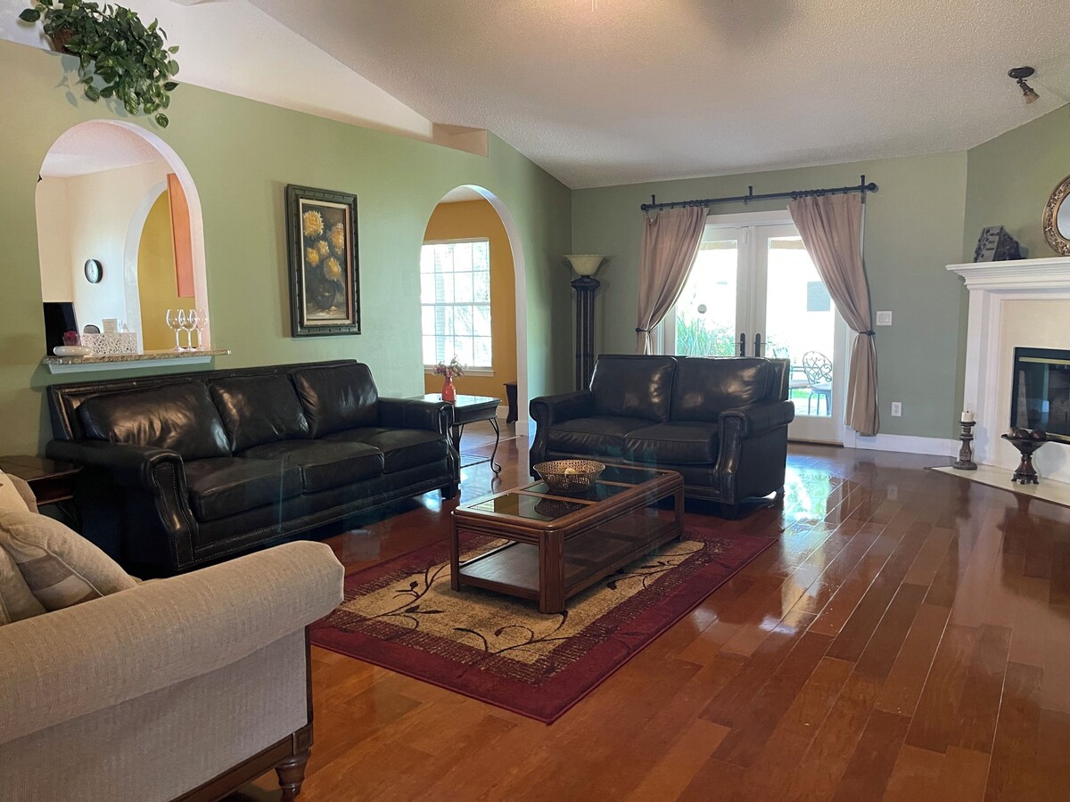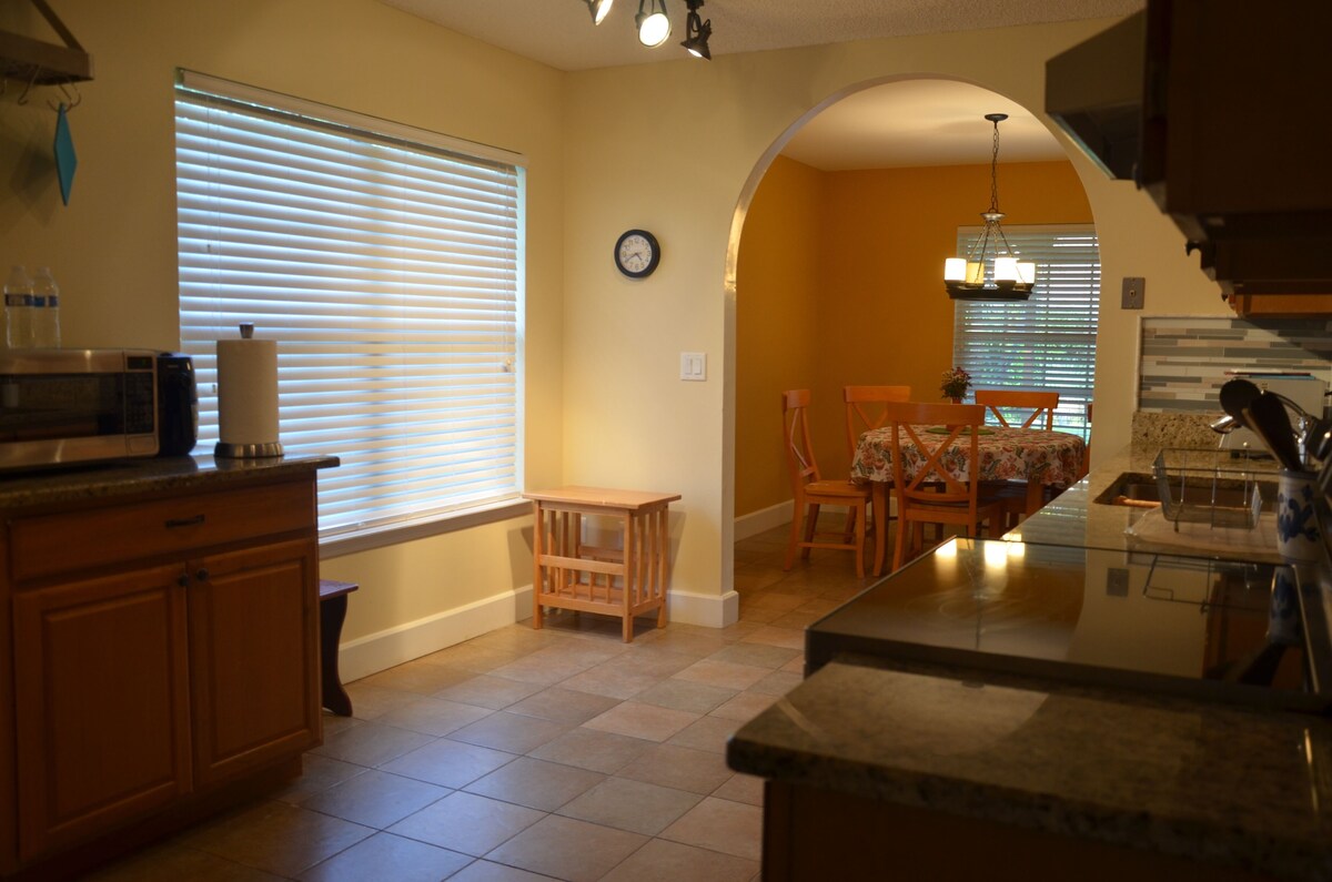 This fully furnished single-family ranch house is located in a quiet and safe neighborhood in the heart of Mandarin in Jacksonville FL. Less than 15 mins to downtown, beaches, and NAS. St Augustine, St Johns, and the Amelia Islands are all nearby. Only 2 mins to major highways, local shopping, dining, and entertainment. The third bedroom can double up as a study for work-from-home travelers.All bed rooms have walking closets. The fenced lush green backyard offers complete privacy and natural beauty. This three-bedroom, two full bathroom house has a huge family room. Includes full-size washer and dryer, air fryer, toaster oven, new dishwasher, electric stove, TV with Amazon fire stick/pots/silverware/coffee machine, etc. Perfect for snowbirds, reunions, families relocating, or traveling professionals Our prices include all fees. No hidden fees.