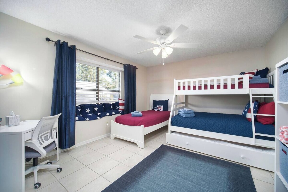 ~Ol' Glory_Sleeps 13_Heated Pool by NAS Jax~ Guest Screening by Know Your Guest Find your home of the brave here at Ol' Glory, where wholesome vibes abide like apple pie with room for all thirteen stripes on 1 King, 2 Queens, 1 Full, 3 Twins, and 1 Sofa bed. Start your star-spangled stay reveille with a hardy American breakfast at our fully-stocked kitchen & brunch bar~ Let freedom ring, enjoying the pool, firepit, grill, and more under spacious skies! We are on a mission to provide quality for our guests. If you have questions prior to your trip, we are happy to help you 7 days a week. During your stay, we will be available 24/7 to answer any questions or issues. We have a team of people waiting to handle any issues that may come up. Oh say can you see the local sites and attractions with ease, as well as nearby shopping at Walmart (0.5 miles) the Orange Park mall (3 miles), and fashionable boutique districts (20 minutes) near downtown. NAS Jax is a quick 10 minute drive and the Beaches are a reasonable 30 minutes away>> Safe, friendly, and quiet neighborhood. Access to the full house, grounds, and amenities. 5 Bed 2.5 Bath -- Built 1987 Renovated 2022 Your home away from home with bright Americana décor, modern amenities, and plush accommodations for your quiet enjoyment, plus a bonus \ poolside cabin (bedroom and 1/2 bath with full-size sofa bed) across the waters from the \ main house. Though we aim to maintain the heated pools (check listing page to confirm if this listing includes a heated or unheated pool) at 87°F (for ambient temperatures above 70°F), please note that we can not guarantee pool temperatures; a heated pool does not imply that the pool will feel hot to touch, as weather and subjective perception vary. Likewise, the spa (if offered at this listing) is typically inoperable during freezing temperatures. Should you require any further assistance with the pool or its operation, feel free to message me. Please DO NOT remove any pool monitoring or cleaning devices>> NOTE that the pool heater runs during pool pump periods on a preset timer; as per our pool manager's recommendation, we do not run the pump continuously>> This home is recommended for swimmers only>> This listing is pet-friendly~ A car is recommended. We also suggest GPS as traffic patterns may vary. >>Guest Screening We are committed to protecting our guests, neighbors, and properties, which is why we've partnered with Know Your Guest, the leading vacation rental guest-screening provider. Please note that before your booking begins, you will need to verify your details through Know Your Guest. >>Cancellation Policy Cancellation policies on this site that favor the guest shall override this overlay for cancellations prior to check-in; after check-in, cancelling remaining nights results in 100% nightly rate refund ONLY starting the 5th booked night after cancellation. Prior to check-in >30 days prior to check-in = 95% refund 30-15 days prior to check-in = 75% refund 15-5 days prior to check-in = 50% refund <5 days prior to check-in = 0% refund After check-in <5 nights after cancellation = 0% refund >5 nights after cancellation = 100% refund >> ALL hours are quiet hours, please be respectful of neighbors >> ***No parties allowed on site*** >> If there are any undisclosed guests, there will be a $500 fine per person. >> Please observe that we charge extra guest fees when the number of guests results in extra use of utilities, extended cleaning times, or similar variable hosting cost increases >> Please advise if you have pets: We charge a pet fee of... $25/day per pet that you bring with you. This reduces to... $150/week per pet and... $300/month per pet for longer term guests. >> ***Undisclosed pets will result in a $500 charge.*** >> Additional fee may occur if excessive shedding/pet fur is left after departure >> Bully breeds are not allowed, multiple pets and larger animals (>25lbs) require prior approval >> Please cover the furniture and guard against pet smell with pet grooming >> Smoking is to take place outside, only in the backyard. Please do not leave butts on the ground. If you smoke inside the home, there will be a $500 fine. >> Communicate problems at check-in or upon discovery to give the host a chance to remedy >> Host, maintenance staff, cleaning staff, owner or other designee may come to the home as the need arises. Notice will be given if possible. >> Cameras if present, are placed for exterior of property only. Refer to your booking to confirm if cameras are present. >> If a grill is an amenity at this listing, we do not maintain them and we recommend cleaning the grill before and after each use. >> If you open it, close it; if you borrow it, return it; if you turn it on, turn it off; if you break it, fix it; if you use it, take care of it; if you make a mess, clean it up; if you move it, put it back... cleaning fees are for the preparation of your stay and do not cover deep cleans due to improper checkouts... >> Our expectation is for the home to be returned to us in the condition in which you found it. >>Groundskeeping Please be aware that we regularly maintain the grounds and utilities of this property, and though we make every effort to provide advance notice, service times often vary; this may include noise disturbances such as lawn mowing, irrigation, and pool/spa maintenance (if present at this property). Do not obstruct or otherwise hinder team members, and take special care to supervise pets during the course of service. Our prices include all fees. No hidden fees.
