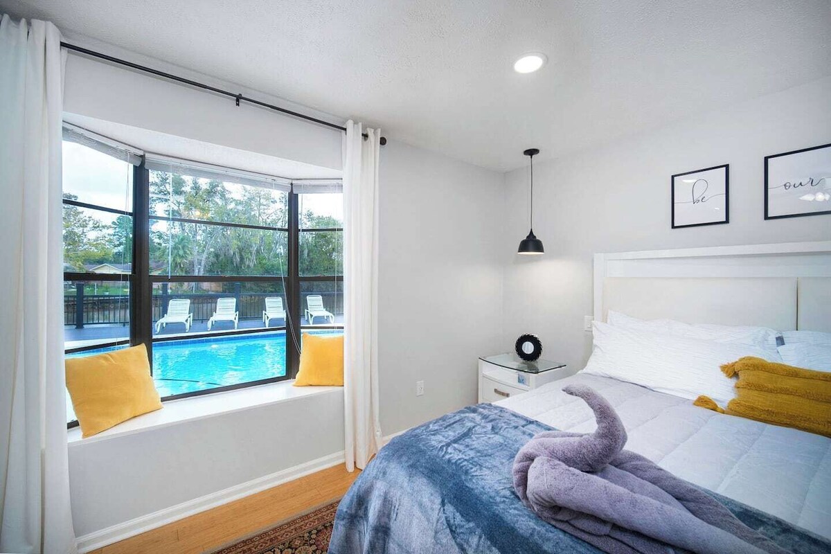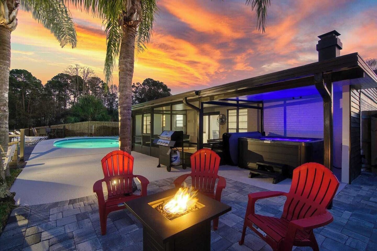 ~Family Funhouse_Sleeps 12_Heated Pool & Spa~ Guest Screening by Know Your Guest Family & friends both will enjoy this fully-stocked funhouse with sleeping room for a dozen fun company, including 1 King, 2 Queens, & 3 Sofa Beds for snoozing. Game on with our hoops, skee ball, and board game selection for the young and young-at-heart alike. Simmer down with a dip in the pool or sumptuous soak in the covered spa with water views; later, enjoy starry nights by the firepit. We are on a mission to provide quality for our guests. If you have questions prior to your trip, we are happy to help you 7 days a week. During your stay, we will be available 24/7 to answer any questions or issues. We have a team of people waiting to handle any issues that may come up. Please understand, we are in close proximity to open fields & desert areas. You might see or encounter wildlife while in our home or neighborhood, including, but not limited to: raccoon, skunk, birds, bees, wasps, mosquitoes, spiders, ants, crickets, bugs, roaches, rolly pollies, and silver fish to name a few. These creatures reside in nature, and we have no control over them. We do spray in and around the home regularly to reduce the incidence of bugs. However, we cannot control mother nature, and therefore, do not refund if you encounter her business during your stay. You will have access to the full home, pool, and grounds. 3 Bed 2 Bath -- Built 1976 Renovated 2022 Recently renovated Mandarin neighborhood home with modern fixtures, contemporary accommodations, and plush furnishings for your comfort and enjoyment, all within a generously-windowed home for maximizing natural lighting. Though we aim to maintain the heated pools (check listing page to confirm if this listing includes a heated or unheated pool) at 87°F (for ambient temperatures above 70°F), please note that we can not guarantee pool temperatures; a heated pool does not imply that the pool will feel hot to touch, as weather and subjective perception vary. Likewise, the spa (if offered at this listing) is typically inoperable during freezing temperatures. Should you require any further assistance with the pool or its operation, feel free to message me. Please DO NOT remove any pool monitoring or cleaning devices>> NOTE that the pool heater runs during pool pump periods on a preset timer; as per our pool manager's recommendation, we do not run the pump continuously>> This home is recommended for swimmers only>> This listing is pet-friendly~ Car is recommended but Uber is an option as well. Traffic patterns vary greatly. >>Guest Screening We are committed to protecting our guests, neighbors, and properties, which is why we've partnered with Know Your Guest, the leading vacation rental guest-screening provider. Please note that before your booking begins, you will need to verify your details through Know Your Guest. >>Cancellation Policy Cancellation policies on this site that favor the guest shall override this overlay for cancellations prior to check-in; after check-in, cancelling remaining nights results in 100% nightly rate refund ONLY starting the 5th booked night after cancellation. Prior to check-in >30 days prior to check-in = 95% refund 30-15 days prior to check-in = 75% refund 15-5 days prior to check-in = 50% refund <5 days prior to check-in = 0% refund After check-in <5 nights after cancellation = 0% refund >5 nights after cancellation = 100% refund >> ALL hours are quiet hours, please be respectful of neighbors >> ***No parties allowed on site*** >> If there are any undisclosed guests, there will be a $500 fine per person. >> Please observe that we charge extra guest fees when the number of guests results in extra use of utilities, extended cleaning times, or similar variable hosting cost increases >> Please advise if you have pets: We charge a pet fee of... $25/day per pet that you bring with you. This reduces to... $150/week per pet and... $300/month per pet for longer term guests. >> ***Undisclosed pets will result in a $500 charge.*** >> Additional fee may occur if excessive shedding/pet fur is left after departure >> Bully breeds are not allowed, multiple pets and larger animals (>25lbs) require prior approval >> Please cover the furniture and guard against pet smell with pet grooming >> Smoking is to take place outside, only in the backyard. Please do not leave butts on the ground. If you smoke inside the home, there will be a $500 fine. >> Communicate problems at check-in or upon discovery to give the host a chance to remedy >> Host, maintenance staff, cleaning staff, owner or other designee may come to the home as the need arises. Notice will be given if possible. >> Cameras if present, are placed for exterior of property only. Refer to your booking to confirm if cameras are present. >> If a grill is an amenity at this listing, we do not maintain them and we recommend cleaning the grill before and after each use. >> If you open it, close it; if you borrow it, return it; if you turn it on, turn it off; if you break it, fix it; if you use it, take care of it; if you make a mess, clean it up; if you move it, put it back... cleaning fees are for the preparation of your stay and do not cover deep cleans due to improper checkouts... >> Our expectation is for the home to be returned to us in the condition in which you found it. >>Groundskeeping Please be aware that we regularly maintain the grounds and utilities of this property, and though we make every effort to provide advance notice, service times often vary; this may include noise disturbances such as lawn mowing, irrigation, and pool/spa maintenance (if present at this property). Do not obstruct or otherwise hinder team members, and take special care to supervise pets during the course of service. Our prices include all fees. No hidden fees.