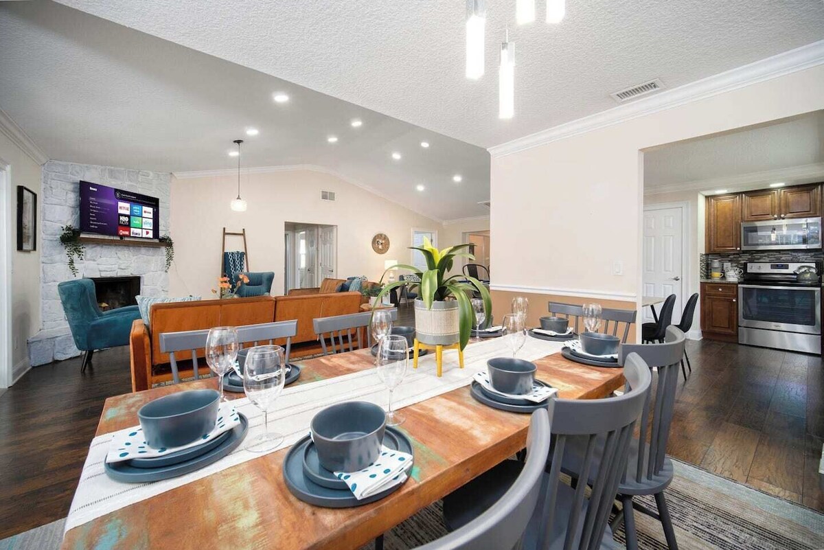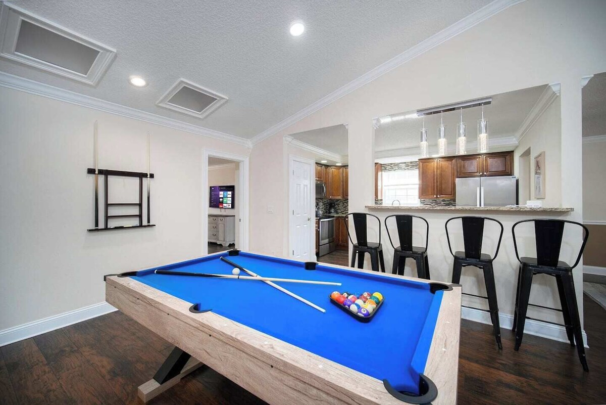 ~8-Ball Abode_Sleeps 8_Pool Basin & Pool Table~ Guest Screening by Know Your Guest Chalk & talk of good times at the Family 8-Ball Abode together with up to 8 guests comfortably accommodated by 1 King, 1 Queen, 2 Twins, and 2 Sofa beds. Double pools of both the outdoor swimming & indoor gaming varieties will keep family of all ages entertained. We are on a mission to provide quality for our guests. If you have questions prior to your trip, we are happy to help you 7 days a week. During your stay, we will be available 24/7 to answer any questions or issues. We have a team of people waiting to handle any issues that may come up. Dine in or out as you please, enjoying the fully-stocked kitchen or the various casual & fine dining offerings in the neighborhood (or all of the above~). Please understand, we are in close proximity to open fields & desert areas. You might see or encounter wildlife while in our home or neighborhood, including, but not limited to: raccoon, skunk, birds, bees, wasps, mosquitoes, spiders, ants, crickets, bugs, roaches, rolly pollies, and silver fish to name a few. These creatures reside in nature, and we have no control over them. We do spray in and around the home regularly to reduce the incidence of bugs. However, we cannot control mother nature, and therefore, do not refund if you encounter her business during your stay. You will have access to the full home, pool, and grounds. 3 Bed 2 Bath -- Built 1982 Renovated 2022 Recently renovated Mandarin neighborhood home with modern fixtures, contemporary accommodations, and plush furnishings for your comfort and enjoyment, all within a generously-windowed home for maximizing natural lighting; enjoy the extended screened in Florida room and pool deck. Though we aim to maintain the heated pools (check listing page to confirm if this listing includes a heated or unheated pool) at 87°F (for ambient temperatures above 70°F), please note that we can not guarantee pool temperatures; a heated pool does not imply that the pool will feel hot to touch, as weather and subjective perception vary. Likewise, the spa (if offered at this listing) is typically inoperable during freezing temperatures. Should you require any further assistance with the pool or its operation, feel free to message me. Please DO NOT remove any pool monitoring or cleaning devices>> NOTE that the pool heater runs during pool pump periods on a preset timer; as per our pool manager's recommendation, we do not run the pump continuously>> This home is recommended for swimmers only>> This listing is pet-friendly~ Car is recommended but Uber is an option as well. Traffic patterns vary greatly. >>Guest Screening We are committed to protecting our guests, neighbors, and properties, which is why we've partnered with Know Your Guest, the leading vacation rental guest-screening provider. Please note that before your booking begins, you will need to verify your details through Know Your Guest. >>Cancellation Policy Cancellation policies on this site that favor the guest shall override this overlay for cancellations prior to check-in; after check-in, cancelling remaining nights results in 100% nightly rate refund ONLY starting the 5th booked night after cancellation. Prior to check-in >30 days prior to check-in = 95% refund 30-15 days prior to check-in = 75% refund 15-5 days prior to check-in = 50% refund <5 days prior to check-in = 0% refund After check-in <5 nights after cancellation = 0% refund >5 nights after cancellation = 100% refund >> ALL hours are quiet hours, please be respectful of neighbors >> ***No parties allowed on site*** >> If there are any undisclosed guests, there will be a $500 fine per person. >> Please observe that we charge extra guest fees when the number of guests results in extra use of utilities, extended cleaning times, or similar variable hosting cost increases >> Please advise if you have pets: We charge a pet fee of... $25/day per pet that you bring with you. This reduces to... $150/week per pet and... $300/month per pet for longer term guests. >> ***Undisclosed pets will result in a $500 charge.*** >> Additional fee may occur if excessive shedding/pet fur is left after departure >> Bully breeds are not allowed, multiple pets and larger animals (>25lbs) require prior approval >> Please cover the furniture and guard against pet smell with pet grooming >> Smoking is to take place outside, only in the backyard. Please do not leave butts on the ground. If you smoke inside the home, there will be a $500 fine. >> Communicate problems at check-in or upon discovery to give the host a chance to remedy >> Host, maintenance staff, cleaning staff, owner or other designee may come to the home as the need arises. Notice will be given if possible. >> Cameras if present, are placed for exterior of property only. Refer to your booking to confirm if cameras are present. >> If a grill is an amenity at this listing, we do not maintain them and we recommend cleaning the grill before and after each use. >> If you open it, close it; if you borrow it, return it; if you turn it on, turn it off; if you break it, fix it; if you use it, take care of it; if you make a mess, clean it up; if you move it, put it back... cleaning fees are for the preparation of your stay and do not cover deep cleans due to improper checkouts... >> Our expectation is for the home to be returned to us in the condition in which you found it. >>Groundskeeping Please be aware that we regularly maintain the grounds and utilities of this property, and though we make every effort to provide advance notice, service times often vary; this may include noise disturbances such as lawn mowing, irrigation, and pool/spa maintenance (if present at this property). Do not obstruct or otherwise hinder team members, and take special care to supervise pets during the course of service. Our prices include all fees. No hidden fees.