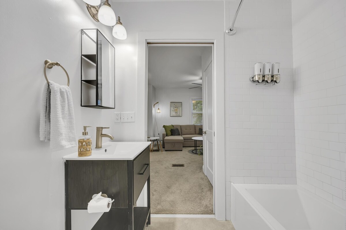 Take it easy at this unique and tranquil getaway apartment in the heart or San Marco within walking distance to bars and restaurants. Dedicated workspace / washer and dryer in unit / outside sitting with small porch and backyard. Perfect space for couples or small families. -1 Bedroom -1 Bathroom -1 Queen bed -1 Sofa Bed -2 Smart TVs -WIFI -Fully Equipped Kitchen -Work Desk -Stainless Steel Appliances -Pet Friendly-Pet fee $60 -Outside shared area with sitting area and fire pit. -Second Floor Unit Our prices include all fees. No hidden fees.