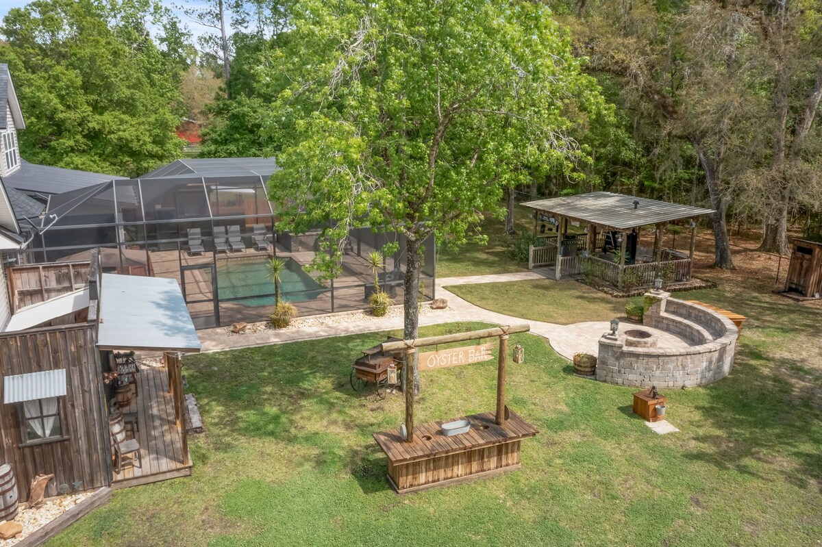 Take it easy at this unique and tranquil getaway. Our villa includes pond, pool, hot tub, outdoor cooking area with industrial smoker, wood burning pizza oven and charcoal/smoke grill. Oyster bar, fire pit area wood included. Kitchen has 2 coffee making options, air cooker and all other essentials. Full laundry with soap and dryer sheets. Parking space for your toys and camper. Security gate w/ fence surrounds property.