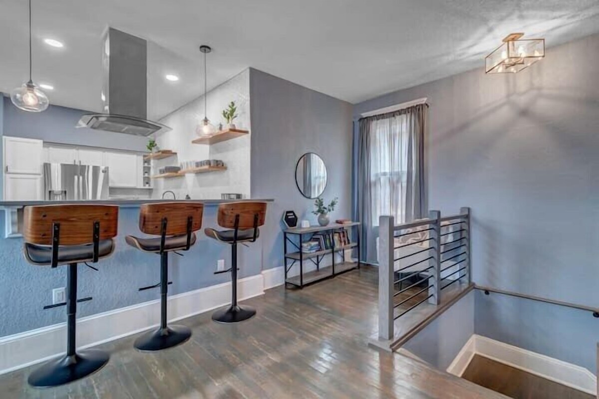 Summary: This is the combination of two apartments (the full duplex). Top floor apt - 5 BR / 2 BA Bottom floor apt - 3 BR / 2 BA This is a gorgeous property equipped with high-end bathrooms and kitchen. Brand new stainless steel appliances, private 2nd-floor patio, and backyard with gardens/pavers. In the middle of up and coming historic Springfield (best neighborhood in Jax!) steps from Main & 6th, Hyperion, & String Sports Brewery. The Space: An open layout, historic charmer with TVs in both the living room and master bedroom. Modern kitchen with everything you need for cooking meals together. Various types of bed layouts for families and friends traveling together. Guest Access: Guests have access to the entire upstairs apartment, front porch and backyard (fenced in). The Neighborhood: Springfield is amazing! It is a diverse, vibrant, up and coming neighborhood located just north of Jacksonville's downtown. You'll initially fall in love with the gorgeous late 19th/early 20th century houses but you'll want to stay for the amazing people. Join a First Friday party, check out the weekly Main Street cruise, downtown's Art Walk, Porchfest if you're in town in the fall, or one of the yearly home tours. A few recommendations: Restaurants The brand new (as of June 2019) String Sports Brewery is directly across the street from you. Their food is AMAZING and they brew their own beer on site. This is a gem/pride of the neighborhood and I'm sure you will love its mouth-watering dishes just as much as we do!!! Crispy’s is a half block away and famous for delicious pizza and great pub food in general Wafaa and Mike’s Cafe is 2-3 blocks to the south and known for delicious Mediterranean food Uptown Kitchen and Bar is ~5 blocks to the south and perfect for delicious breakfast lunch and dinner - one of the most popular traditional Tommy’s is approximately a half mile to the southeast and is known for Springfield’s famous $3 breakfast in a cup Sweet Pete’s (as featured on MSNBC's \ ) is about 3/4 mile to the southwest for delectable brunch and sinfully delicious sweets; Pete also happens to be a historic Springfield resident so you may very well see him and his family walking their dog around the neighborhood Coffee Social Grounds coffee shop for the best (not joking - seriously amazing) locally roasted coffee in Jax Drinks String Sports Brewery - craft brewery directly across the street from you Hyperion - craft brewery that is 1/2 block away 6th and Main - craft brewery that is 2 blocks away Crispy's - fully stocked bar with lots of TVs for sports events, dart boards, and an upstairs area great for larger groups that is half a block away Uptown Kitchen and Bar - fully stocked bar with TVs that are usually playing sports games that is a few blocks away on Main St Getting Around: Springfield is a great neighborhood for walking and biking! Jacksonville's Skyway, with limited service around the Urban Core area is a half mile to the south and is co-located with Jacksonville's central bus station. Ride sharing services are also great options as well and driving is preferable for areas well outside of central Jax (St Augustine, Brunswick, Gainesville, etc.) Other Things to Note: PLEASE CONTACT US PRIOR TO BOOKING IF YOU WOULD LIKE TO REVIEW RENTAL AGREEMENT. We charge for additional guests above a fixed amount. This amount and additional charge varies by unit type, size, and configuration. If you input the correct guest count when you make your reservation the amount the booking site indicated as the total cost will not change (due to guest count). We ask for confirmation of guest count after you complete your booking. If you need to increase your guest count after booking confirmation due to a booking error, this could result in a price increase. Finally, we verify guest count via external cameras located on our properties. In the event that we notice a guest count at the property that is higher than reported, we reserve the right to ask for additional guest fees that would be double the amount we would have charged prior to check-in. Kindly refer to the following guidelines regarding fees for extra guests: Studio & 1 BR units - $25 per guest/night after 2 guests (i.e. 3 guests would be $25/night extra and 4 guests would be $50/night extra) 2 BR units - $30 per guest/night after 4 guests (i.e. 5 guests would be $30/night extra and 6 guests would be $60/night extra) 3 BR unit - $35 per guest/night after 6 guests (i.e. 7 guests would be $35/night extra and 8 guests would be $70/night extra) 4 BR units - $40 per guest/night after 8 guests (i.e. 9 guests would be $40/night extra and 10 guests would be $80/night extra) 5 BR+ units - $45 per guest/night after 10 guests (i.e. 11 guests would be $45/night extra and 12 guests would be $90/night extra) This house is pet friendly so if you are highly allergic to dogs or cats this home may not be a good fit for you. Our cleaning service is very good but you may notice an occasional dog/cat hair here and there. We charge a pet fee of $50 / night / pet that you bring with you. This reduces to $250/week per pet and $500/month per pet for longer term guests. This fee is not included in the accommodation fare rate. We will send a request for the additional funds once the number of pets is confirmed after booking. ***If you neglect to inform us ahead of time that you are bringing a pet with you then we reserve the right to either TERMINATE your stay early or DOUBLE the pet fee retroactively for the entirety of your reservation.*** ***Parties/Events of any kind are strictly forbidden at this property. If you host a party/event/gathering at this property we will levy a $1000 fine.*** We have a minimum 7 day stay requirement for local guests. We rarely make an exception to policy but may elect to do so at our sole discretion. If you are local to Jax and book for less than 7 days we reserve the right to ask you to cancel your reservation. We have a washer and dryer av