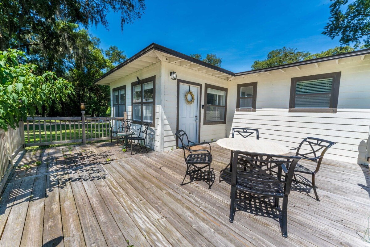This delightful abode is the perfect blend of comfort and style, offering you a memorable stay in this vibrant city. Step onto the inviting front porch and be greeted by a quaint round table and seating, where you can enjoy your morning coffee while soaking in the warm Florida sun. It's an ideal spot to start your day or unwind in the evening with a glass of wine. Whether you're here for business or leisure, our 4-bedroom, 2-bathroom home promises a delightful stay. Available when needed. At the junction of San Jose and University Boulevards is Lakewood. The majority of the residences in this neighborhood were constructed in the 1950s. Numerous churches, two commercial malls, and streets bearing the names of prestigious private universities including Clemson, Cornell, Fordham, and Emory can be found in the neighborhood. You will have complete access to the home. With four beautifully appointed bedrooms, there's plenty of room for everyone. Sink into the comfort of plush beds and enjoy peaceful nights of rest. The two well-appointed bathrooms offer convenience and privacy, making getting ready for the day a breeze. Sleeps 9. Full kitchen (fridge w/freezer, microwave, dishes, silverware, and coffee maker), towels, sheets, etc. Wifi is included with a flat-screen TV. Some of the amenities we have include: **Smart TVs available **W/D ** Fridge ** Microwave **Coffee pot with coffee, cream, and sugar ** Eating Utensils and more! Car or Uber. Health & Safety: We prioritize the health, safety, and comfort of our guests. Each stay is followed by a thorough cleaning to maintain a welcoming environment. Late Check-Outs & Early Arrivals 1-2 hours: $100 2-3 hours: $200 Note: Early arrivals and late check-outs are not guaranteed due to our tight cleaning schedule. Please request approval in advance. Refund Policy A 3.9% processing fee on refunds is non-refundable. Refunds will be the amount paid minus this fee, per Stripe's policy. This applies to direct booking and bookings made through select booking channels. General Guidelines ●Pets: A pet fee of $100 applies per reservation for up to 2 pets. Bringing a pet without prior notification incurs an additional $100 fee, and we may end your stay early. No cats allowed. If your pet causes any damages, additional charges will be incurred to cover repair or cleaning costs. ●Age Requirement: Primary guest must be 21+, with an adult over 21 present during the stay. Food & Drink: No food or drink in bedrooms (closed water bottles allowed); extra cleaning fees for stains. ●No Smoking: Smoking of any kind is prohibited; $200 fine for violations. Additional charges will be incurred to cover repair or cleaning costs. ●Trash: Dispose of all trash in outside bins before departure. ●Damages: Report any damages within 24 hours of occurrence or immediately upon arrival. Failure to report damages could result in liability for repair or replacement costs. ●Dishes: Wash all dishes and run the dishwasher (if applicable) before leaving. ●Windows: Keep windows closed for security. ●Laundry: Avoid overloading machines; do not wash sandy items, and clean the dryer lint trap. ●Storage Closet: Keep this area closed and locked. ●Consumables: Leftover items are at your discretion; freshness is not guaranteed. ●Furniture: Do not rearrange. ●Parties & Events: Unauthorized parties are not allowed; violations will result in additional charges and immediate eviction. ●Only registered guests are permitted to stay at the property. If you would like to add extra guests beyond the number initially registered, please request approval before finalizing your booking. Any additional guests that exceed the maximum allowed at the property will incur an additional charge of $100 per person. This requires approval from us prior to booking. ●Illegal Activities: Will result in immediate eviction. ●Quiet Hours: 10pm to 7am. Please be respectful of neighbors. Thank you for your cooperation, and enjoy your stay! Our prices include all fees. No hidden fees.
