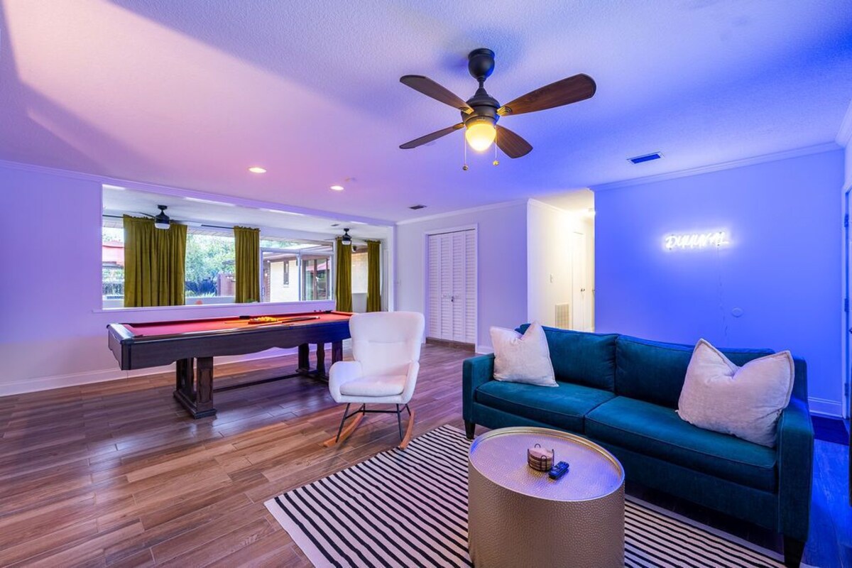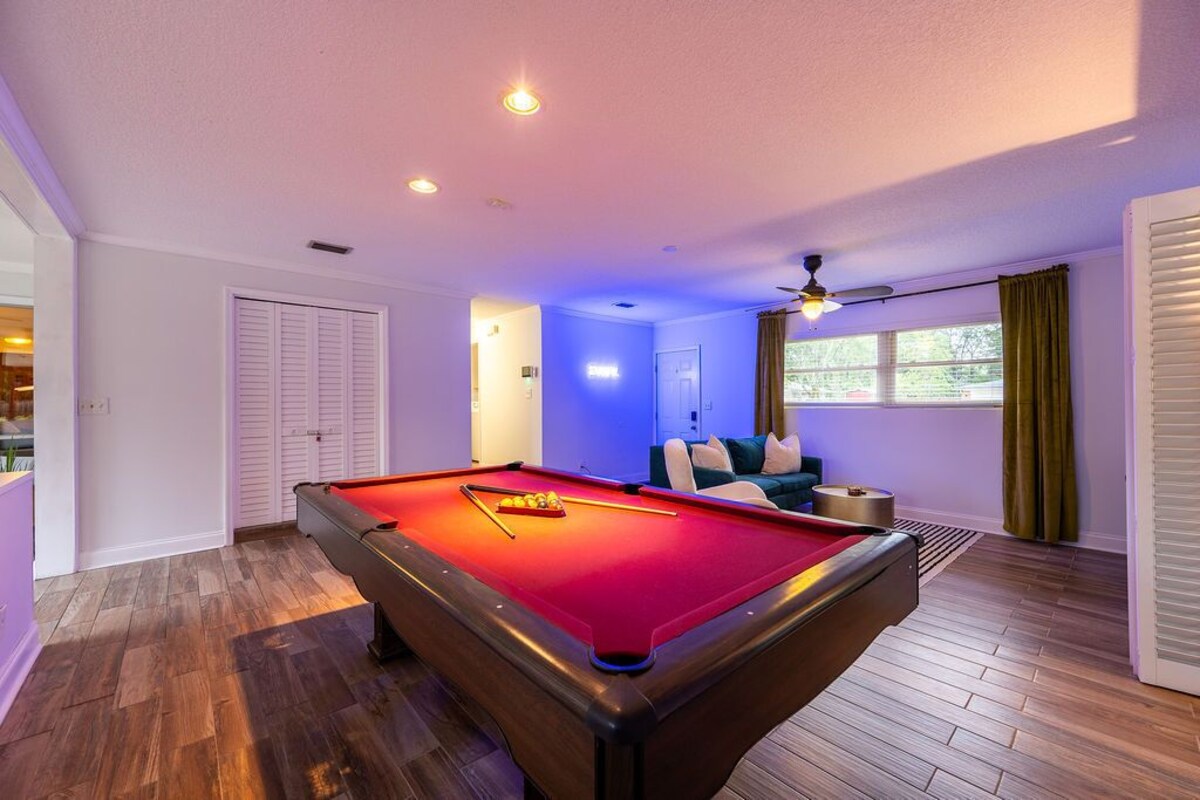 Nestled in a serene neighborhood, this 3-bedroom, 2-bathroom pool home offers you a resort-like experience! Lounge by the sparkling pool, soaking in the warm Florida sun, or unwind in the inviting hot tub, letting the bubbling water wash away your cares. As the sun sets, gather around the fire pit and toast marshmallows under the starlit sky. Share stories and laughter with your loved ones, creating memories that will last a lifetime. It is ideally located, offering easy access to Jacksonville. Available when needed. The Westside of Jacksonville is home to one of the best equestrian centers. The top horse competitions are displayed at the premier venue for local and national championships. The Equestrian Center offers a wide range of entertainment opportunities outside of horse displays, including concerts, mud races, and sporting activities. You will have complete access to the house and its amenities. Our home features three thoughtfully designed bedrooms, each furnished with your comfort in mind. Sink into the soft linens and enjoy a peaceful night's sleep, dreaming of the adventures that await you the next day. Ample storage space and tasteful decor add to the charm of each bedroom. Both Pool and Hotub. Full kitchen 3 bedrooms 2 bathrooms (fridge w/freezer, microwave, dishes, silverware, and coffee maker), towels, sheets, etc. Wi-fi is included with a flat screen TV. Some of the amenities we have include. **Smart TVs available ** Pool ** Billiard Table **Fire Pit **Coffee maker with coffee, cream, and sugar ** Eating Utensils **Big screen TV **Laptop-friendly workspace **2 Double Bed, King, Queen, Pull out couch, bean bag mattress and more! Car or Uber Health & Safety: We prioritize the health, safety, and comfort of our guests. Each stay is followed by a thorough cleaning to maintain a welcoming environment. Late Check-Outs & Early Arrivals 1-2 hours: $100 2-3 hours: $200 Note: Early arrivals and late check-outs are not guaranteed due to our tight cleaning schedule. Please request approval in advance. Refund Policy A 3.9% processing fee on refunds is non-refundable. Refunds will be the amount paid minus this fee, per Stripe's policy. This applies to direct booking and bookings made through select booking channels. General Guidelines ●Pets: A pet fee of $100 applies per reservation for up to 2 pets. Bringing a pet without prior notification incurs an additional $100 fee, and we may end your stay early. No cats allowed. If your pet causes any damages, additional charges will incur to cover repair or cleaning costs. ●Age Requirement: Primary guest must be 21+, with an adult over 21 present during the stay. Food & Drink: No food or drink in bedrooms (closed water bottles allowed); extra cleaning fees for stains. ●No Smoking: Smoking of any kind is prohibited; $200 fine for violations. Additional charges will incur to cover repair or cleaning costs. ●Trash: Dispose of all trash in outside bins before departure. ●Damages: Report any damages within 24 hours of occurrence or immediately upon arrival. Failure to report damages could result in liability for repair or replacement costs. ●Dishes: Wash all dishes and run the dishwasher (if applicable) before leaving. ●Windows: Keep windows closed for security. ●Laundry: Avoid overloading machines; do not wash sandy items, and clean the dryer lint trap. ●Storage Closet: Keep this area closed and locked. ●Consumables: Leftover items are at your discretion; freshness is not guaranteed. ●Furniture: Do not rearrange. ●Parties & Events: Unauthorized parties are not allowed; violations will result in additional charges and immediate eviction. ●Only registered guests are permitted to stay at the property. If you would like to add extra guests beyond the number initially registered, please request approval before finalizing your booking. Any additional guests that exceed the maximum allowed at the property will incur an additional charge of $100 per person. This requires approval from us prior to booking. ●Illegal Activities: Will result in immediate eviction. ●Quiet Hours: 10pm to 7am. Please be respectful of neighbors. POOL & HOT TUB RULES ●Use at Your Own Risk: By using the hot tub and/or pool, guests acknowledge and agree that they are using these amenities at their own risk. ●Supervision: For safety reasons, children under the age of 16 must be supervised at all times while using the hot tub or pool. ●Health & Safety: Guests should not use the hot tub or pool if they are under the influence of alcohol or drugs. Please shower before entering the hot tub or pool to maintain cleanliness. ●Cleanliness: Please ensure that no oils, lotions, or soaps are brought into the hot tub or pool. This helps maintain the quality of the water for all guests. ●Proper Use: For your safety, please follow all posted guidelines and do not engage in risky behavior in the pool or hot tub (e.g., diving, rough play). ●Damage: Any damage to the pool or hot tub caused by misuse will be charged to the guest. Thank you for your cooperation, and enjoy your stay! Our prices include all fees. No hidden fees.