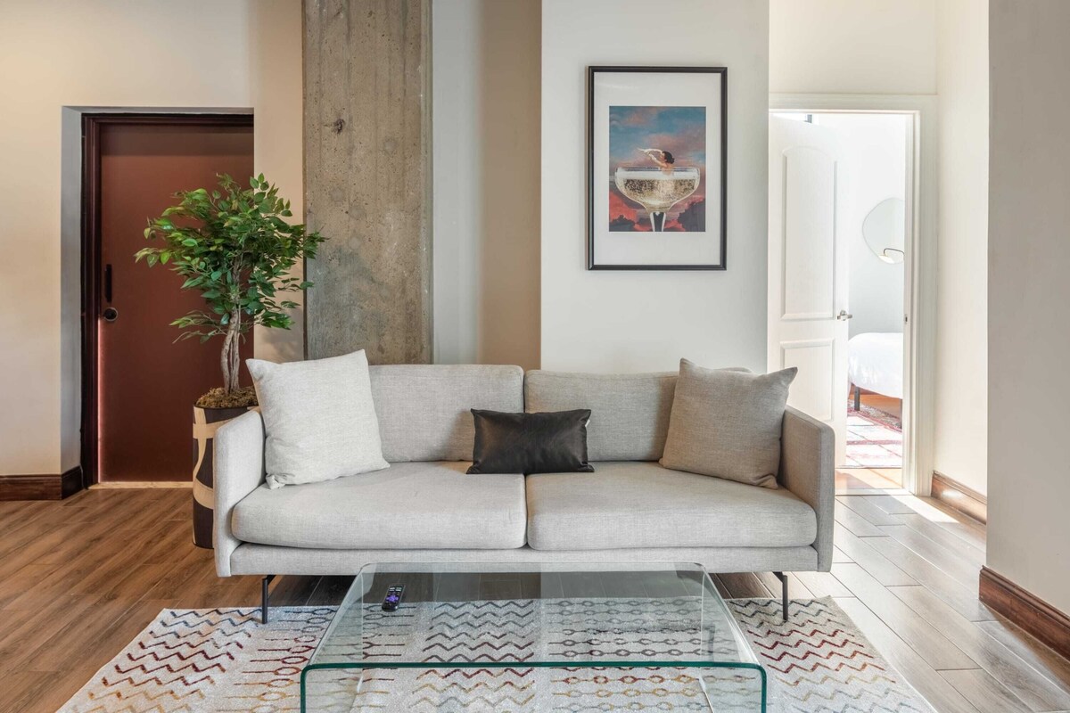 Summary: Step back in time at Sosuite at Independence Lofts, a historical building once home to a printing press factory in the 1900s, recently converted to unique living spaces. Enjoy brunch at the on-site restaurant, enjoy a stroll at the Rail Park, and hop on a short car ride to everything the city has to offer. This Sosuite features dedicated workspaces, a private terrace, fully-equipped kitchen, and everything you need for a couple of days or a year-long stay. The Space: Experience Sosuite: hotel-level amenities with the perks of a home, all paired with an unmatched guest experience. Sosuites are designed to reflect the history and character of the exciting neighborhoods in which they are located, providing an elevated stay in some of Philadelphia's unique buildings. Amenity highlights: - Convenient On-Site Parking (Fee Applies) - 24/7 on-site security - Gym open seven days a week - Lobby mural by local artist - Pet-friendly: bring your furry friend ($25/night max 2 pets) The Sosuite standard: - Fully-equipped kitchens - Keyless smart check-in - Smart TVs to binge the latest show - Fast wifi, we're WFH-ready - Luxe bath amenities by Beekman 1802 - Comfy mattress & soft cotton sheets - In-unit washer-dryer Upon booking, you’ll get access to Sosuite's mobile guide to Philadelphia’s best-kept secrets and hidden gems, as curated by locals. You will be close to so much that Philly has to offer: → Across the street from Union Transfer → 15-min walk to Reading Terminal Market → 9-min drive to Rittenhouse square Please note that we utilize hotel like room types. This means that this listing represents more than one apartment and your final unit might have minor deviations from the photos above. All items (down to the number of forks and knives), room size, amenities, quality, etc. are exactly the same, but there may be minor layout or furnishing differences. Guest Access: You will have exclusive, private access to your Sosuite apartment. In addition, you will have access to the lobby, which was designed by renowned local artist Natalie McDonald, and the building's fitness center. The Neighborhood: Callowhill's transformation from industrial hub to a lively arts district is a Philadelphia success story. This neighborhood, with its historic lofts and contemporary murals, offers an urban canvas to both residents and visitors. Its streets are alive with music venues, art galleries, and innovative eateries, making it a cultural hotspot. The Reading Viaduct, an elevated green space, symbolizes Callowhill's blend of history and progress. Top 5 Attractions:The Rail Park Underground Arts Vox Populi Gallery The Prohibition Taproom Love City Brewing Company Getting Around: Philadelphia, one of the country’s most walkable cities, is incredibly easy to navigate either by foot or by public transportation. That just leaves one question: Where to park the car? ON-SITE PARKING: The building offers paid parking starting at $25/day (discounts for longer stays) We’ll share the link to reserve your spot with them once you book. ON-STREET PARKING Philadelphia has thousands of metered spots throughout the city, perfect if you only plan to park for an hour or two. The area near this unit usually has a little street parking available. Be sure to read all parking signs very carefully before leaving your car to avoid ticketing and towing during hours in which parking may be prohibited. OTHER OPTIONS For moving around, you'll also find several bus stops, bike ride-sharing stations, and subway stations. Otherwise, we recommend getting around the city using Uber or Lyft - its fairly affordable & we'd be happy to share discount codes with you! Other Things to Note: - The gym is open from 7 am to 9 pm - There is an accessible ramp at the left-hand side entrance of the building - Parking details will be provided after booking. The gated lot has covered and uncovered options, and you are allowed to come and go as needed during your stay. Rates start at $25-$10(discounts for longer stays, with a cap of $300 per month) - Extra cleaning services can be requested during your stay for an additional fee - Pets are welcome for a $25/night cleaning fee (capped at $250/month) - A $250 deposit may be collected before check-in, and ID collection/waiver may be required. Reservation are not eligible for refunds if these steps are not completed. Interaction with Guests: If you have any questions or concerns throughout your stay, we're happy to help you. We are available in real-time from 9am to 1am 7-days a week. Don't hesitate to send us a message, a text or to give us a call. Our prices include all fees. No hidden fees.