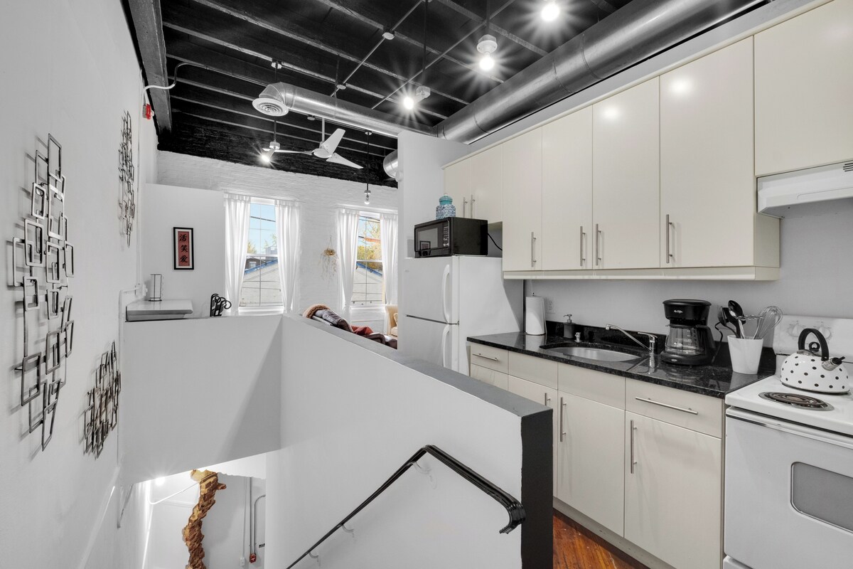 Step into a piece of Philadelphia's industrial heritage reimagined for modern living in this breathtaking loft apartment. Located on the second floor and accessed by a beautiful grand staircase, this 1-bedroom + 1.5 bath sanctuary features dramatic high ceilings, abundant natural light through large windows, and sophisticated contemporary furnishings. With central AC and heat, this space offers year-round comfort for remote workers, pet owners, or anyone seeking a unique Philadelphia experience Neighborhood Guide: Historic Germantown Located in one of Philadelphia's most historically significant neighborhoods, this loft puts you at the heart of American history while offering modern urban living. ### Historical Points of Interest (All Within 2 Miles): * Germantown White House: George Washington's summer residence during his presidency * Johnson House Historic Site: A key stop on the Underground Railroad * Cliveden: Site of the Battle of Germantown (1777) * Wyck Historic House: One of America's oldest rose gardens * Grumblethorpe: Historic colonial Germanic architecture * Hood Cemetery: Final resting place of many Revolutionary War soldiers ### Local Attractions: * Vernon Park (\ ) - 5 minute walk * Germantown Avenue Historic District - 2 minute walk * Wissahickon Valley Park - 10 minute drive * Rittenhouse Town Historic District - 8 minute drive ### Modern Conveniences: * Uncle Bobbie's Coffee & Books - 7 minute walk * Germantown Kitchen Garden - 5 minute walk * Historic Germantown Farmers Market (Seasonal) - 3 minute walk * Multiple cafes and restaurants along Germantown Avenue * Public transportation to Center City (Regional Rail and Bus Lines) ### Dining Highlights: * Ultimo Coffee Rittenhouse - 3 minute walk * Earth Bread + Brewery - 12 minute walk * Rose Petals Cafe - 5 minute walk * Zen Nor Japanese Restaurant - 8 minute walk * Germantown Espresso Bar - 6 minute walk Historical Fun Facts: * Germantown was founded in 1683 by German Quaker and Mennonite families * It was an independent municipality before being incorporated into Philadelphia in 1854 * The area was home to the first paper mill in America * Germantown served as the temporary capital of the United States during the 1793 yellow fever epidemic * The neighborhood hosted America's first written protest against slavery in 1688 * The Battle of Germantown was a significant engagement in the Revolutionary War * Self check-in supported for convenient arrival * Guest support available: - Monday, Thursday, Friday: 9am - 11pm EST - Tuesday, Wednesday: 9am - 6pm EST - Saturday, Sunday: 9am - 11pm EST * Digital guide and house manual provided * Keyless entry system * Emergency contact information available 24/7 This factory-turned-luxury-loft perfectly balances historic industrial character with modern comfort. The open-concept living area showcases soaring ceilings and large windows that flood the space with natural light. The fully stocked kitchen features everything you need to prepare meals at home, while the comfortable living area invites you to relax and unwind. The private bedroom offers a peaceful retreat with a premium queen bed, while 1.5 well-appointed bathrooms ensure convenience and comfort. Kitchen & Amenities * Fully equipped modern kitchen * Full-size refrigerator and freezer * Microwave * Stove and oven * Complete set of cookware * Full set of utensils and flatware * Coffee maker and basic cooking supplies * Dishware and glassware for dining Work-From-Home Setup * Dedicated workspace with natural lighting from large windows * High-speed internet for video calls * Multiple charging stations * Comfortable ergonomic seating * Coffee maker for those early meetings * Quiet neighborhood for focused work * Climate-controlled environment with central AC/heat Transportation: * SEPTA Germantown Station - 10 minute walk * Multiple bus lines within 2 blocks * 25 minutes to Center City Philadelphia * Easy access to major highways (RT 1 and I-76) * Impressive high ceilings with large windows providing gorgeous natural light * Beautiful historic grand staircase leading to your second-floor sanctuary * Central air conditioning and heating for year-round comfort * Private bedroom suite with plush queen bed and premium linens * 1.5 luxurious bathrooms with ceramic finishes * Sleek mounted smart TV for entertainment * High-speed WiFi throughout * Free street parking (based on availability) * Pet-friendly accommodation (additional fee applies) Max - 2 pets Come experience the perfect blend of historical charm and modern comfort in this unique Germantown loft. Whether you're a digital nomad seeking an inspiring workspace, traveling with your furry friend, or exploring Philadelphia's rich history, our thoughtfully designed space provides everything you need for a comfortable stay. The combination of historic architectural details like the grand staircase with modern amenities such as central AC and fully equipped kitchen creates an unforgettable living experience. Our prices include all fees. No hidden fees.