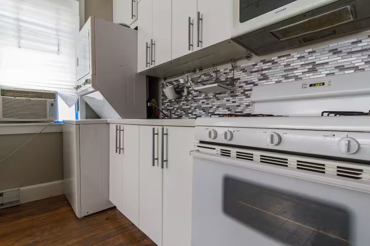 Escape to this welcoming apartment in picturesque Fishtown Philadelphia. This cozy space is equipped with all the essentials for a comfortable stay, including iron, heating, washing machine, hair dryer, AC, and WiFi. With one bathroom, this beautiful retreat is perfect for guests looking for a peaceful getaway. Enjoy all that Philadelphia has to offer when you stay at our place. - VERY VERY SMALL MODEST SPACE - Completely PRIVATE SPACE and PRIVATE BATH and PRIVATE PATIO - Furnished by IKEA, decor by Goodwill - 1ST FLOOR, NO STAIRS!!! - ONLY DOGS fee $10/night per dog - NO CATS NO CATS NO CATS - SmartTV, HuluLive+TV, Disney, Prime, Netflix, AppleTV - Close to everything, walkable safe neighborhood - Annes Deli Mon-Sat 7-10, Sun 8-5 - Fishtown Deli M-F 6-9, Sat/Sun 8-9 - Early/Late Check-in/out 1pm $20 Our prices include all fees. No hidden fees.