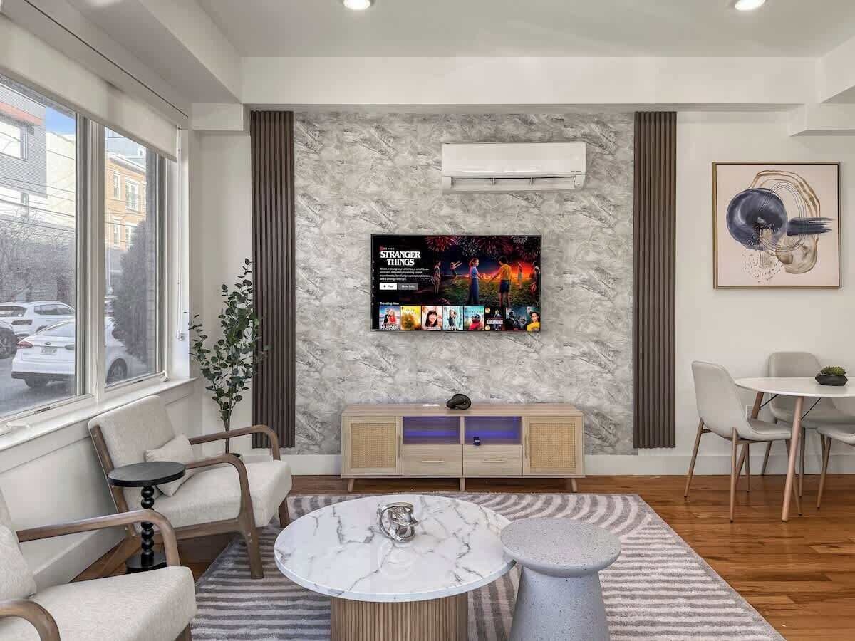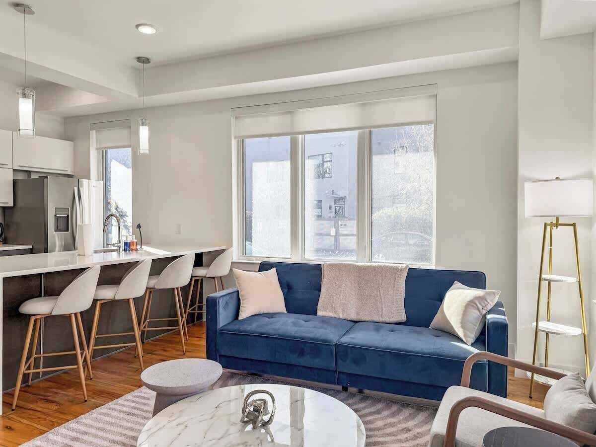 Summary: Welcome to our cozy two-bedroom haven, perfectly situated in Philadelphia’s vibrant Northern Liberties neighborhood! Known for its eclectic charm and energetic atmosphere, Northern Liberties boasts a thriving community with bustling cafes, unique boutiques, and a rich calendar of events. From local art galleries and live music venues to delicious eateries and lively beer gardens, this dynamic area offers something special for every visitor. The Space: This beautifully designed two-bedroom apartment offers a perfect blend of comfort and style, ideal for families, friends, or business travelers looking to explore Philadelphia. As you step inside, you'll be greeted by a bright, open living area filled with natural light, providing a warm and inviting atmosphere for relaxation. The modern décor and thoughtful layout create an ideal space to unwind after a day of sightseeing. A comfortable sofa bed in the living room provides additional sleeping space for extra guests. Primary Bedroom: The first bedroom features a plush queen-sized bed, ideal for restful nights and ultimate relaxation. The room is spacious, with a calming ambiance and ample storage for your belongings. Second Bedroom: The second bedroom offers two comfortable full-sized beds, perfect for accommodating additional guests or creating a flexible sleeping arrangement. This room is equally inviting, with a clean and modern design. Step into a stylish and functional kitchen designed to meet all your culinary needs. Outfitted with stainless steel appliances, including a refrigerator, oven, microwave, and dishwasher, ensuring a seamless cooking experience. Both bathrooms feature modern fixtures and spacious bathtubs, perfect for a soothing soak after a long day. Thoughtfully designed with sleek vanities, ample lighting, and contemporary tilework to create a clean and inviting space. Located in the heart of Northern Liberties, the apartment offers easy access to public transportation, allowing you to explore Philly’s historic landmarks, museums, and vibrant nightlife with ease. Whether you're here for business or leisure, this two-bedroom apartment is your perfect base for discovering Philadelphia. Book your stay today and experience the best of the city from your stylish urban retreat! Guest Access: Self-check-in with smart lock. Full access to the entire apartment. Take advantage of our amenities, including high-speed Wi-Fi, laundry facilities, and complimentary toiletries. Other Things to Note: Please treat the space with respect. If any problems arise, we will do our best to resolve them as swiftly as possible. GUEST VERIFICATION REQUIREMENT: To abide by all legal requirements and property security rules, you may be asked to provide a copy of your official government-issued photo ID, confirm your contact information, pass through our verification portal, and/or, in some instances, complete a criminal background check. Important note: The information is collected for screening and verification only and is not stored or used for any other purposes. Please be advised that all guests will be asked to sign a rental usage agreement that governs the terms of the stay. By completing the reservation you agree to the following: « You agree to be bound by our rental terms and conditions. « You acknowledge that you will be required to provide a copy of a valid government-issued ID prior to check-in. « You acknowledge that you may be required to undergo a background check if mandated by the property management company or the owner, as stated in accordance with your rental agreement and condition of the booking. « You understand that your check-in instructions might be withheld until you have successfully completed our verification portal. All guests are subject to verification checks and are required to provide the necessary information to us within 24 hours of booking. Same-day bookings are required to provide the information within 1 hour of booking. We reserve the right to cancel any reservation that does not meet our verification check criteria. Pets ARE allowed depending on size, please let us know beforehand and be upfront about bringing a pet to avoid cancellation. The following additional PER Pet Cleaning Fee applies: 1 - 4 Nights: $25 per Night 5 -29 Nights: $200 30+ Nights: $300 Interaction with Guests: If you need any assistance or have any questions during your stay, please don't hesitate to reach out to us. We are here to make your visit as enjoyable as possible. Our prices include all fees. No hidden fees.