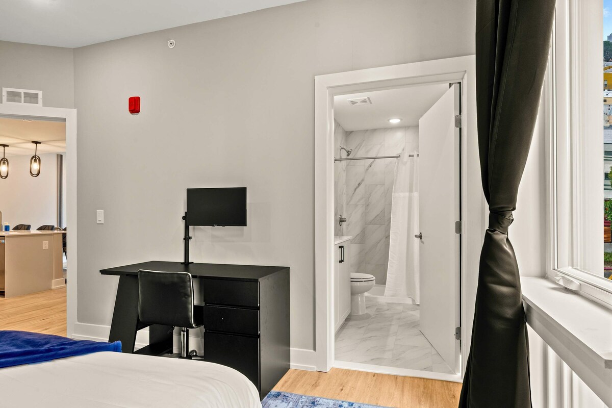 Summary: Welcome to your home away from home! Nestled in the vibrant heart of Philadelphia! Our cozy urban retreat offers the perfect blend of comfort, convenience, and modern amenities. Ideal for both business travelers and vacationers, this charming apartment promises a memorable stay. The Space: This inviting 2BR apartment is thoughtfully designed to cater to all your needs for a carefree and enjoyable stay. Bedroom 1: Relax in the serene ambiance of the first bedroom, furnished with a plush queen bed. Enjoy a restful night’s sleep with high-quality linens, cozy pillows, and ample closet space for your belongings. Bedroom 2: The second bedroom features two full-sized beds, making it perfect for kids or additional guests. This cozy and inviting space ensures comfort and flexibility for a restful stay. Equipped with a comfortable desk and chair to ensure you can work for extended periods without discomfort. Living Room: The living room features a stylish and comfortable sofa bed, seamlessly integrated into the space. This additional sleeping option is perfect for accommodating extra guests, ensuring everyone has a cozy place to rest. Kitchen: The kitchen is outfitted with state-of-the-art stainless steel appliances, including a refrigerator, oven, stove, microwave, and dishwasher. These modern conveniences make cooking and cleanup a breeze. Bathrooms: The bathrooms feature a contemporary design with clean lines and high-quality finishes. The elegant décor and thoughtful layout create a serene and inviting atmosphere. Experience the best of Philadelphia from our stylish urban apartment. Whether you’re visiting for business or leisure, we look forward to hosting you and ensuring your stay is memorable and enjoyable. Guest Access: Guests have full access to the entire apartment, ensuring a private and comfortable stay. Self-check-in is available for your convenience. Other Things to Note: ★ GUEST VERIFICATION PRIOR TO STAY IS REQUIRED To abide by all legal requirements and property security rules, you may be asked to provide a copy of your official government-issued photo ID, confirm your contact information, pass through our verification portal, and/or, in some instances, complete a criminal background check. Important note: The information is collected for screening and verification only and is not stored or used for any other purposes. Please be advised that all guests will be asked to sign a rental usage agreement that governs the terms of the stay. By completing the reservation you agree to the following: « You agree to be bound by our rental terms and conditions. « You acknowledge that you will be required to provide a copy of a valid government-issued ID prior to check-in. « You acknowledge that you may be required to undergo a background check if mandated by the property management company or the owner, as stated in accordance with your rental agreement and condition of the booking. « You understand that your check-in instructions might be withheld until you have successfully completed our verification portal. All guests are subject to verification checks and are required to provide the necessary information to us within 24 hours of booking. Same-day bookings are required to provide the information within 1 hour of booking. We reserve the right to cancel any reservation that does not meet our verification check criteria. Pets ARE allowed depending on size, please let us know beforehand and be upfront about bringing a pet to avoid cancellation. The following additional PER Pet Cleaning Fee applies : 1- 4 Nights : $25 Per Night 5-29 Nights : $200 30+ Nights : $300 Note: Surveillance cameras in the hallways for security. Minut device in the unit for noise level. Interaction with Guests: We respect your privacy but are always available to assist with any questions or concerns. Feel free to reach out to us during your stay for any assistance. Our prices include all fees. No hidden fees.