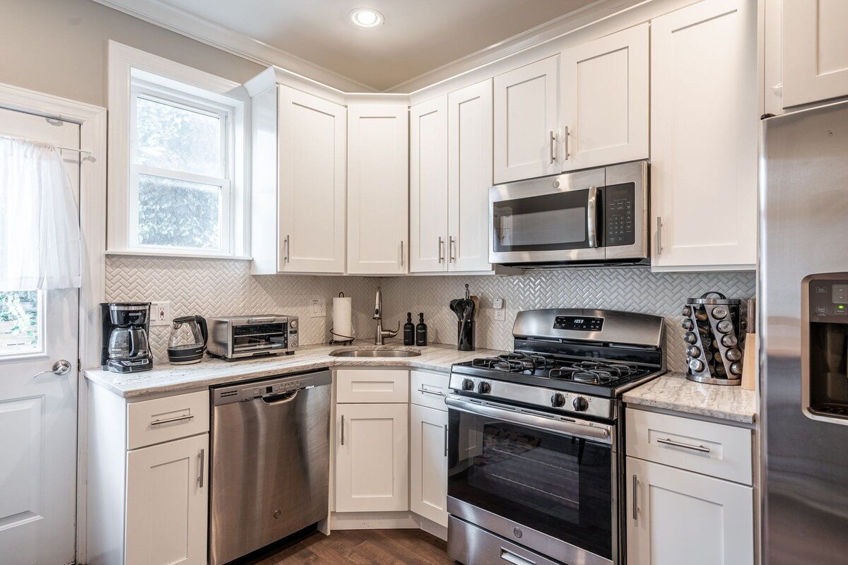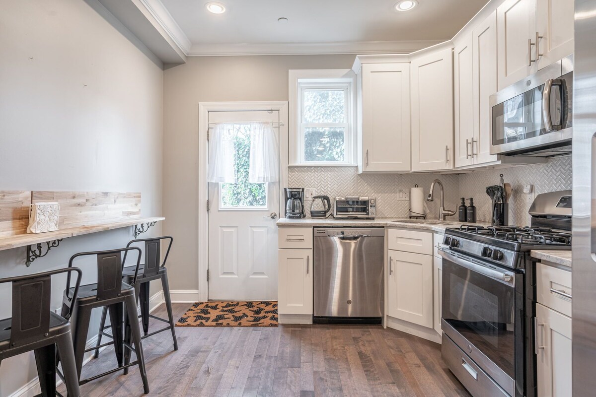 Located in vibrant Fishtown area of downtown Philadelphia, this beautifully designed 4Bedroom, 3.5 Bathrooms combines modern amenities with city charm. Comfortably sleeps 12, it boasts a cozy living room, a fully equipped kitchen & stylish comfortable bedrooms. Enjoy outdoor spaces with city views from the rooftop deck and a private back patio. With eclectic dining, nightlife, and a family-friendly atmosphere, this home offers the perfect blend of convenience and comfort for a memorable stay. THE SPACE Welcome to our modern and beautifully designed 4-bedroom, 3.5 bathrooms house in the heart of the Fishtown neighborhood of downtown Philadelphia. This spacious and beautifully appointed home combines modern amenities with classic comfort, making it an ideal retreat for families, groups, or anyone looking to experience Philly in style. The highlight of this home is undoubtedly its open concept common areas - perfect for the group relaxing and being together - while also providing plenty of room for the group to spread out and have privacy. Don't miss the expansive roof deck providing the perfect spot to enjoy a morning coffee or an evening cocktail while taking in the stunning views of the Philadelphia skyline. The property also has quaint back patio offering additional outdoor space for relaxation or entertaining. The detailed layout and bedding is as follows: - 1st floor: Kitchen / Living room (with a queen sleeper sofa) / Dining room / Half Bathroom and Small patio patio w/furniture - 2nd floor: Bedroom #1 (Queen sized bed) ; Hall Full Bathroom #1 ; Bedroom #2 (Queen sized bed) - 3rd floor: Master Bedroom #3 (2 Queen sized beds) ; Full Ensuite Bathroom #2 -4th Floor: Roofdeck With Furniture - Basement: Bedroom #4 (2 single sized beds) ; Full Bathroom #3 GREAT LOCATION! Located in the desirable downtown Philadelphia neighborhood of Fishtown, there’s no shortage of family AND fun. This neighborhood has emerged as Philly’s truest harbor of artistic, culinary, and musical action. This classic working-class neighborhood, so named due to its history as an epicenter for the commercial shad-fishing industry, offers a colorful exception to the city’s gridded urban rule with its collection of narrow streets beset with modest row homes and independently-owned businesses. A short ride to all tourist attractions (Independence Hall/Liberty Bell), festivities, great restaurants, shopping, and whatever else you may need. If you'd prefer not to walk, the El, bus or a taxi/uber is literally just outside your front door. Fishtown is a trendy neighborhood with some of the newest (and best) restaurants and bars, with adequate free parking directly out the front door. This place is a real gem! - ~5 minute uber to Independence Hall / Liberty bell / Historic Old City - ~10 minute Uber to Center City and City Hall - ~10 minute Uber to Art Museum and Ben Franklin Parkway -~5 minute walk to the Berks El station to take you to old city and center city - ~7 blocks from I-95 for easy access! **For your convenience we provide all towels, linens, shampoo, conditioner and soap to make your stay as enjoyable and easy as possible.** GUEST ACCESS Entire home. OTHER THINGS TO NOTE Please note, while we do enjoy hosting your pet on our property, the type allowed is at our discretion and there will be a charge of $50.00 per pet before VRBO's taxes and fees. If you, your group, or reservation details are comprised of one or more of the following, we kindly ask that you send a property inquiry PRIOR TO BOOKING to avoid cancelation. You can do so by clicking ‘contact host’ under the listing property description and should include more about yourself and your group, age range of the group, and the total number of guests which will be at the property (whether spending the night or not): *Local guests to the area or suburbs (within 45 minute drive) of the rental property *University or High School students *Reservation check-in falling within 10 days of booking If you do not send us an inquiry prior to booking as described above, we have the right to request cancellation due to us being uncomfortable with the reservation under VRBO's Instant Book Policy 1) No guests are permitted at the property without prior notice and approval; if guests are allowed, they are only permitted between the hours of 8am and 12am. 2) Excessive noise is prohibited and violators are subject to fines and penalties. Our prices include all fees. No hidden fees.