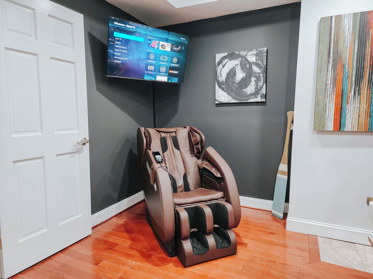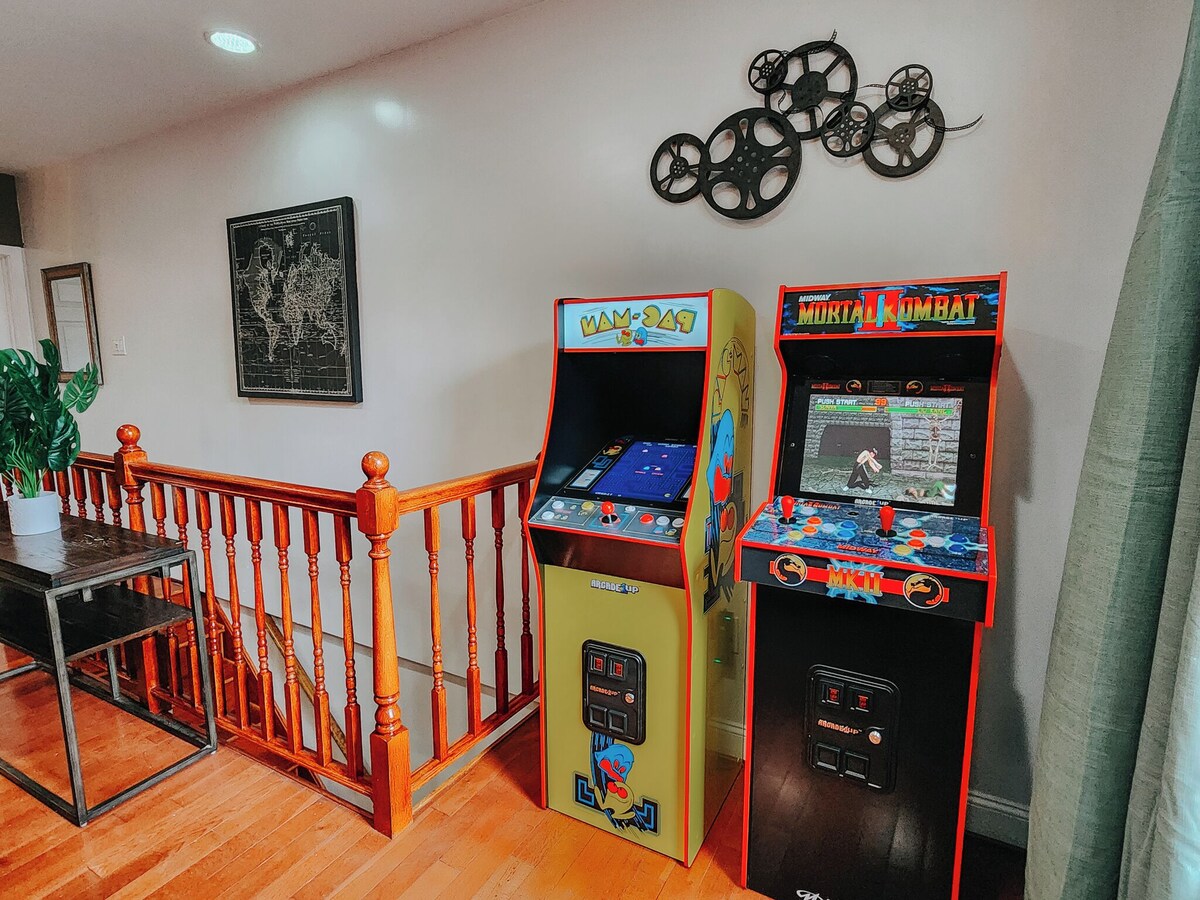 Welcome to your ultimate getaway in the heart of Center City, Philadelphia! This modern apartment features 2 Units Combined in the same building with 4 Bedrooms, 3 En-Suite Bathrooms, 3 King-size beds, and 2 Queen Beds. This stylish and spacious apartment is located on Walnut Street, putting you right in the middle of all the action. Perfect for families, friends, or business travelers, this luxurious space offers a unique blend of comfort and entertainment that you won't find anywhere else. ★HOME HIGHLIGHTS★ • 85\ 4K TV in the second living room • 50\ 4K TV in the kitchen area • 4 Bedrooms = 3 King Beds, 2 Queens, 1 Sofa Twin Bed • 3 Full Bathrooms • 3 En-Suite Bathrooms • Fully equipped kitchen • Pool/Ping-Pong Combo Table • Heated Full Body Massage Chair • Pac-Man & Mortal Kombat Arcade • 120\ s Bar: Unwind and enjoy a local vibe with great drinks and atmosphere. ★NEARBY★ • Convection Center = 4 min drive/ 10 min walk • Rocky Statue = 8 min drive • Franklin Institute = 7 min drive ☞ Kindly take note that this apartment is situated in a walk-up building on the second and fourth floors, and thus, it is essential to ensure your comfort when using the stairs before making a reservation. However, you ,