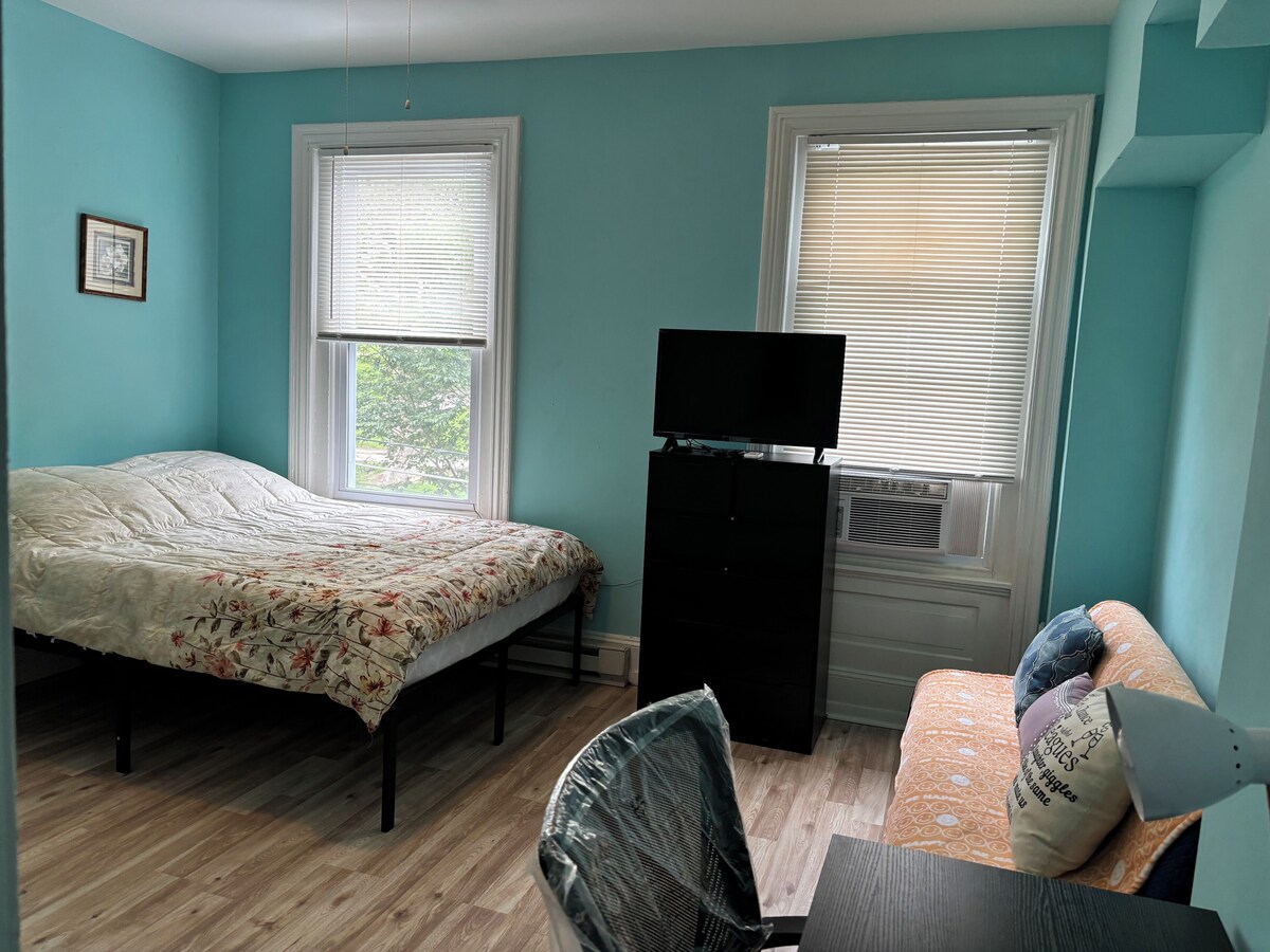 Your cozy apartment in Philadelphia with 1 lovely bedroom featuring a queen bed. Enjoy the cool AC, heating, and hair dryer provided for your comfort. Relax in the bathroom with all the essentials you need. We look forward to welcoming you to our place. Our prices include all fees. No hidden fees.