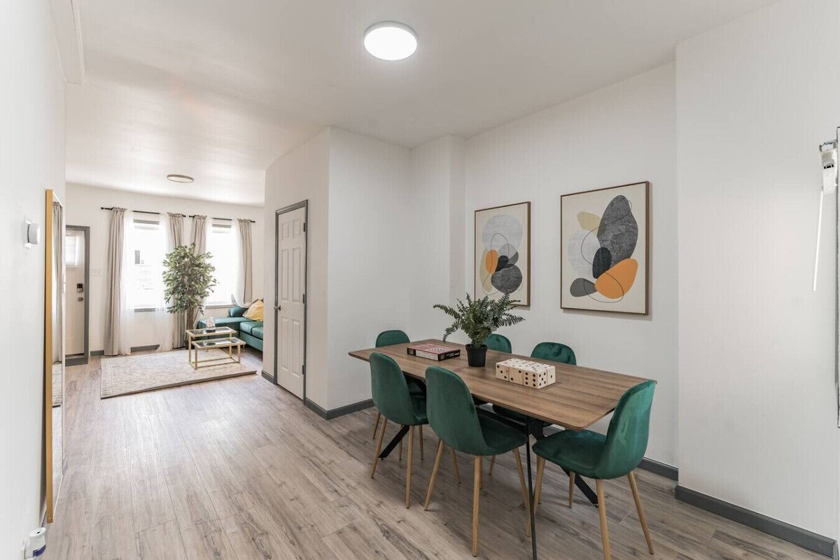 Spacious 5BR home just 12 mins from downtown Philly! Perfect for families or groups, this updated property offers generous living space, modern kitchen, and comfortable bedrooms. Located in a vibrant neighborhood near restaurants, public transit, and Temple University. Ideal for city living with room to spread out! AMENITIES: ✔️ Unit comes with high-speed internet ✔️ Essential toiletries (Towels, Bed sheets, Shampoo, Bath soap and Toilet paper) ✔️ Fully stocked Kitchen w/all necessary utensils, pots, and pans to make a full meal ✔️ Plush queen-sized beds ✔️ 2 high quality air-mattresses ✔️ Kitchen amenities: Coffee maker, Oven, Toaster ✔️ Extra bedding for air-mattress ✔️ Washer/Dryer in unit ✔️ Dining Table with 8 chairs ✔️ Fenced in Outdoor Terrace ✔️ 5 full bedrooms ✔️ 2.5 bedrooms ✔️ 6 Queen sized beds Guests will have access to the entire unit during their stay. No areas of the apartment are shared with anyone else. Guests will have access to the entire unit during their stay. No areas of the apartment are shared with anyone else. Check-In & Check-Out: • Standard Check-In: 4:00 PM • Standard Check-Out: 10:00 AM Need flexibility? • Early Check-In (2:00 PM) – $25 (if available) • Late Check-Out (12:00 PM) – $25 (if available) ⚠️ Unauthorized early check-ins or late check-outs may result in a $200 fee, so please contact us atleast 48-hours in advance! PARKING: Street parking is available in the center of the area. Additional public parking lots are also nearby. Street parking is first come, first served basis Note: For safety and security, surveillance cameras are located at the front & rear exterior of the building and monitor and record activity 24/7. PETS: We’re happy to welcome your furry friends! Pets must be registered at the time of booking and included as part of the guest count on Airbnb. There is a fee of $25 per pet, per day. Please note, if a pet is found on the property without prior registration, your reservation will be canceled, you will be asked to leave immediately, and a $500 fine will be imposed by Airbnb. QUIET HOURS: Quiet hours are strictly enforced in the building from 10:00 PM to 8:00 AM. Please be respectful of neighbors and keep noise to a minimum during this time. OTHER HOUSE RULES: ❌ No more than 14 guests are allowed in the home at any time ❌ No parties or events permitted — violations will result in a $1,000 fine, immediate cancellation, and eviction ❌ No smoking or use of illicit drugs inside the unit ❌ No open flames or fire of any kind allowed in the unit 🔇 No loud music or disruptive behavior inside the home 🚫 Do not disturb neighbors under any circumstances during your stay ⚠️ Any other house rule violations (excluding parties) will result in a $500 fine per incident, collected through Airbnb. Our prices include all fees. No hidden fees.