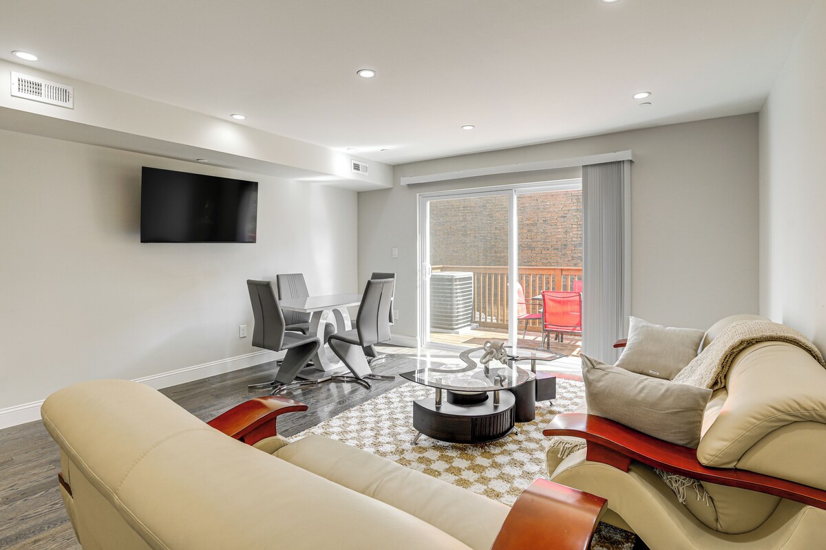 Furnished Balcony | Pet Friendly w/ Fee | Near Public Transportation | 3 Mi to Philadelphia Museum of Art Step into the heartbeat of Philadelphia — this 1-bedroom, 1-bath vacation rental offers easy access to urban adventures and local eats. Whether cheering on the Eagles, touring Old City's historic sites, or working remotely, this condo places you right in the mix. After a busy day, stream your favorite shows on the Smart TV or enjoy an al fresco meal. Your extended stay in Philly awaits! -- THE PROPERTY -- SLEEPING ARRANGEMENTS - Bedroom: 1 queen bed KITCHEN - Stove/oven, refrigerator, microwave, dishwasher - Dual drip & pod coffee maker, blender, toaster - Cooking basics, dishware & flatware - Trash bags/paper towels INDOOR LIVING - Smart TVs - Dining table OUTDOOR LIVING - Private balcony - Dining table w/ umbrella GENERAL - Central heating & A/C - Washer/dryer, laundry detergent, iron/board - Linens/towels, complimentary toiletries, hair dryer - Free WiFi - Keyless entry FAQ - Pet fee (paid pre-trip) ACCESSIBILITY - Single-story condo, 2nd-floor unit - 5 exterior steps & an interior staircase to access PARKING - Street parking (first-come, first-served) -- THE LOCATION -- - Easy access to I-76 - 2 miles to JFK Plaza & Philadelphia City Hall - 3 miles to Xfinity Mobile Arena, Citizens Bank Park & Lincoln Financial Field - 3 miles to the Franklin Square - 3-5 miles to Old City, the Liberty Bell & Rivers Casino Philadelphia - 6 miles to Philadelphia International Airport -- REST EASY WITH US -- Evolve makes it easy to find and book properties you’ll never want to leave. You can relax knowing that our properties will always be ready for you and that we’ll answer the phone 24/7. Even better, if anything is off about your stay, we’ll make it right. You can count on our homes and our people to make you feel welcome — because we know what vacation means to you. -- POLICIES -- - No smoking - Pet friendly w/ $50 fee (+ fees & taxes, 1 pet max) - No events, parties, or large gatherings - Must be at least 25 years old to book - Additional fees and taxes may apply - Photo ID may be required upon check-in ADDITIONAL INFORMATION - This single-story condo is located on the 2nd floor and requires 5 exterior steps and an interior staircase to access Our prices include all fees. No hidden fees.