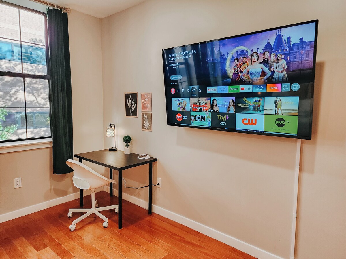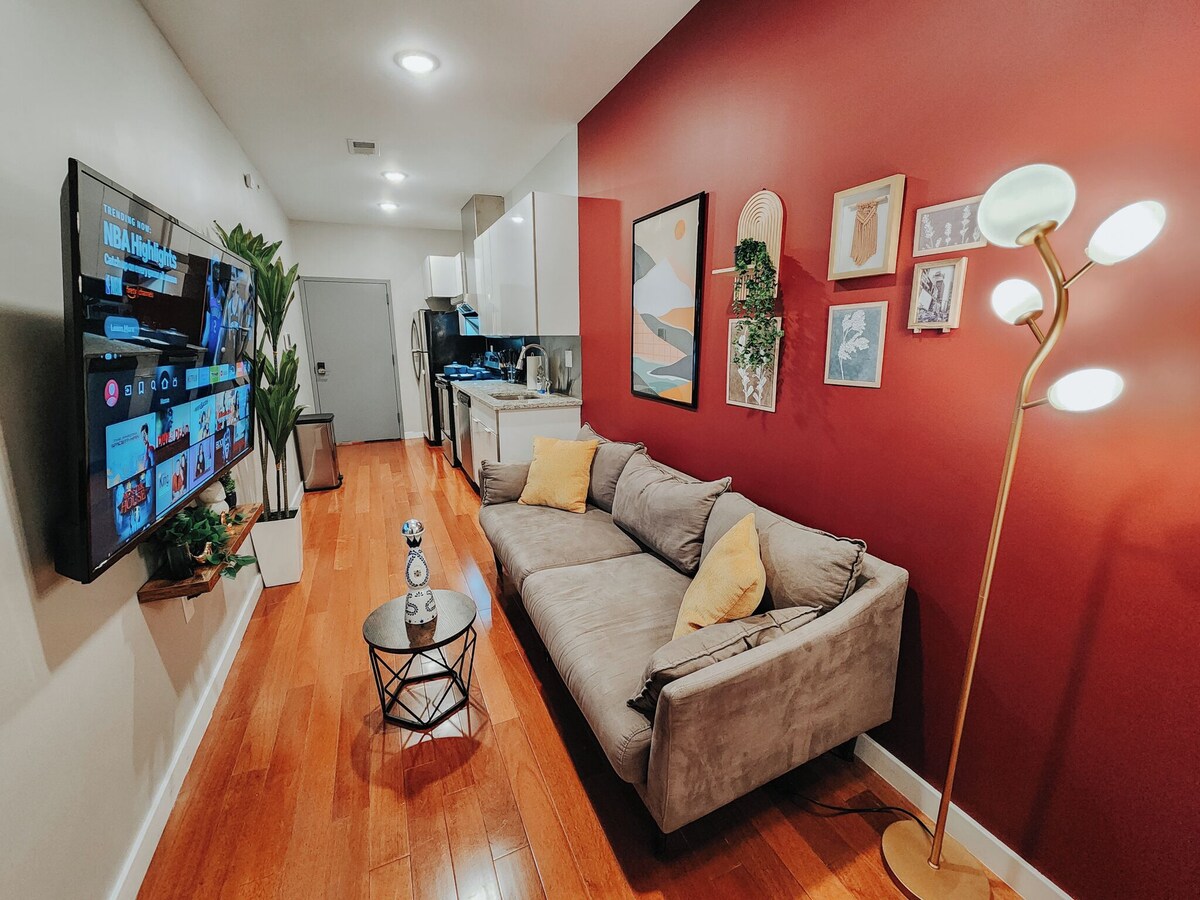 Experience modern living in our stunning 2-bedroom, 1-bathroom apartment, featuring a 65-inch TV in the living room. Conveniently located across from Thomas Jefferson University Hospital and within walking distance of the Convention Center, Chinatown, Reading Terminal Market, shopping malls, bars, restaurants, and lounges. The space ★HOME HIGHLIGHTS★ • 65\ 4K TVs in the bedrooms • 2 Bedroom = 2 King Beds • Fully equipped kitchen • Blackout Curtains • Washer & Dryer • Rainfall Shower • Central AC/Heat ★98 Walk Score ★100 Rider’s Paradise Guest access ☞ Kindly take note that this apartment is situated in a walk-up building on the fourth floor, and thus, it is essential to ensure your comfort when using the stairs before making a reservation. However, you'll be pleased to know that the stairs are not steep, making them easy to climb. Other things to note ★PARKING INFO★ Street parking is complimentary during the following hours: Monday to Friday: 10 PM to 6 AM Saturday to Sunday: 10 PM to 8 AM Please ensure you check the signs to confirm where you are allowed to park. You can use the MeterUp app to pay for parking during paid hours. Important: From Monday to Friday, between 3:30 PM and 6:30 PM, you must move your car, or it will be towed. Alternatively, there is a paid parking garage located in front of the building. ★PETS WELCOME★ We welcome your furry friends with a $60 pet fee per pet, per stay (maximum of 2 pets). Please ensure you add your pet to the pet count when booking. Let us know in advance if you're bringing a pet. We ask that pets remain well-behaved. ★DEDICATED SUPPORT TEAM★ Our team is available to assist you! Whether you have a question about the home, need recommendations for the best local spots, or require any assistance during your stay, just send us a message via the Vrbo app—we’re happy to help. We also have a dedicated maintenance team and professional cleaners on standby, ensuring any issues are resolved quickly to make your stay as smooth as possible. Registration Details 725916 Our prices include all fees. No hidden fees.