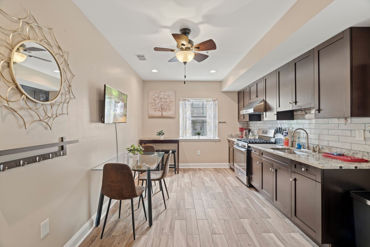 Stay in the heart of Center City/Chinatown in this modern bi-level 2BR with exclusive access to a basketball court. Steps from the Convention Center, Fashion District mall, and endless Chinatown dining, this stylish retreat is perfect for both business and leisure. Enjoy spacious living across two levels, comfortable bedrooms, and unbeatable walkability to Philly’s top attractions, shops, and restaurants. Our prices include all fees. No hidden fees.