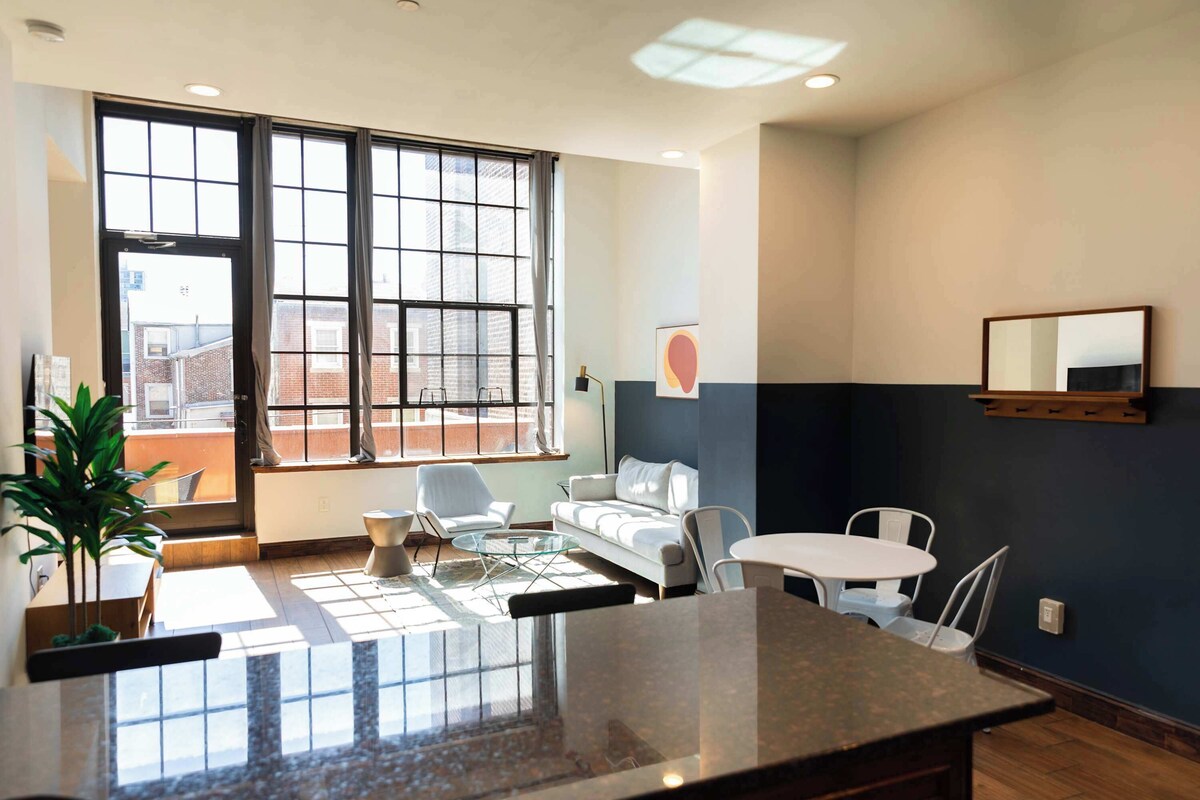 Summary: Step back in time at Sosuite at Independence Lofts, a historical building once home to a printing press factory in the 1900s, recently converted to unique living spaces. Enjoy brunch at the on-site restaurant, enjoy a stroll at the Rail Park, and hop on a short car ride to everything the city has to offer. This Sosuite features a private deck, dedicated workspaces, fully-equipped kitchen, and everything you need for a couple of days or a year-long stay. The Space: Experience Sosuite: hotel-level amenities with the perks of a home, all paired with an unmatched guest experience. Sosuites are designed to reflect the history and character of the exciting neighborhoods in which they are located, providing an elevated stay in some of Philadelphia's unique buildings. Amenity highlights: - Private deck - Convenient On-Site Parking (Fee Applies) - 24/7 on-site security - Gym open seven days a week - Lobby mural by local artist - Pet-friendly: bring your furry friend ($25/night max 2 pets) The Sosuite standard: - Fully-equipped kitchens - Keyless smart check-in - Smart TVs to binge the latest show - Fast wifi, we're WFH-ready - Luxe bath amenities by Beekman 1802 - Comfy mattress & soft cotton sheets - In-unit washer-dryer Upon booking, you’ll get access to Sosuite's mobile guide to Philadelphia’s best-kept secrets and hidden gems, as curated by locals. You will be close to so much that Philly has to offer: → Across the street from Union Transfer → 15-min walk to Reading Terminal Market → 9-min drive to Rittenhouse square Guest Access: You will have exclusive, private access to your Sosuite apartment. In addition, you will have access to the lobby, which was designed by renowned local artist Natalie McDonald, and the building's fitness center. The Neighborhood: Callowhill's transformation from industrial hub to a lively arts district is a Philadelphia success story. This neighborhood, with its historic lofts and contemporary murals, offers an urban canvas to both residents and visitors. Its streets are alive with music venues, art galleries, and innovative eateries, making it a cultural hotspot. The Reading Viaduct, an elevated green space, symbolizes Callowhill's blend of history and progress. Top 5 Attractions:The Rail Park Underground Arts Vox Populi Gallery The Prohibition Taproom Love City Brewing Company Getting Around: Philadelphia, one of the country’s most walkable cities, is incredibly easy to navigate either by foot or by public transportation. That just leaves one question: Where to park the car? ON-SITE PARKING: The building offers paid parking starting at $25/day (discounts for longer stays) We’ll share the link to reserve your spot with them once you book. ON-STREET PARKING Philadelphia has thousands of metered spots throughout the city, perfect if you only plan to park for an hour or two. The area near this unit usually has a little street parking available. Be sure to read all parking signs very carefully before leaving your car to avoid ticketing and towing during hours in which parking may be prohibited. OTHER OPTIONS For moving around, you'll also find several bus stops, bike ride-sharing stations, and subway stations. Otherwise, we recommend getting around the city using Uber or Lyft - its fairly affordable & we'd be happy to share discount codes with you! Other Things to Note: - The gym is open from 7 am to 9 pm - There is an accessible ramp at the left-hand side entrance of the building - Parking details will be provided after booking. The gated lot has covered and uncovered options, and you are allowed to come and go as needed during your stay. Rates start at $25-$10(discounts for longer stays, with a cap of $300 per month) - Extra cleaning services can be requested during your stay for an additional fee - Pets are welcome for a $25/night cleaning fee (capped at $250/month) - A $250 deposit may be collected before check-in, and ID collection/waiver may be required. Reservation are not eligible for refunds if these steps are not completed. Interaction with Guests: If you have any questions or concerns throughout your stay, we're happy to help you. We are available in real-time from 9am to 1am 7-days a week. Don't hesitate to send us a message, a text or to give us a call. Our prices include all fees. No hidden fees.
