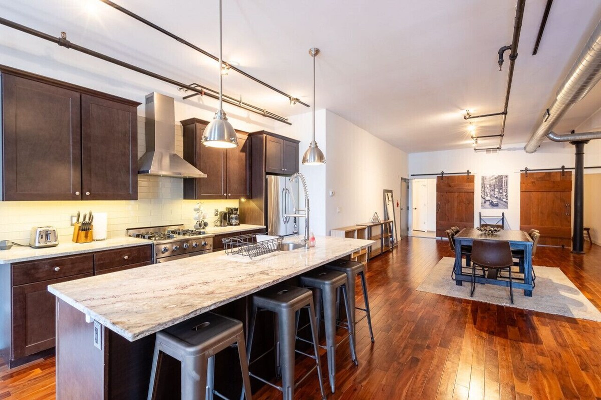 Snapshot Highlights Sleeps 6 comfortably across 3 queen bedrooms 2 full bathrooms with hotel-grade linens and supplies Direct elevator access—no stairs, private entry code Garage parking included (1 vehicle, 50 ft from door) FAST Wi-Fi + Smart TV for streaming and work stays Fully equipped chef’s kitchen with island seating Pet-friendly (dogs, $250 fee) Steps to top landmarks: Liberty Bell (1 min), Independence Hall (2 min), Reading Terminal Market (10 min), Convention Center (15 min walk) Where You’ll Be Located at 30 S 7th Street in Washington Square West, this bright corner loft sits in the center of Philadelphia’s historic district—walkable, energetic by day, calm at night. Cafés, bakeries, and cocktail bars line the surrounding blocks. You’ll hear normal city buzz but enjoy privacy on the upper floor with secure, code-only access. Distances: Liberty Bell – 1 min walk Independence Hall – 2 min walk Washington Square Park – 5 min walk Old City shops & dining – 5 min walk Reading Terminal Market – 10 min walk Pennsylvania Convention Center – 15 min walk Sports Complex – 15 min drive Philadelphia International Airport – 20 min drive Transit: Broad Street Line ≈ 3 min walk; rideshare to airport ≈ $25–35 (estimate) The Space Open-plan living area: 15-ft ceilings, floor-to-ceiling windows, sectional seating, and dining for 6 Chef’s kitchen: stainless steel appliances, island bar, full cookware, drip + Keurig coffee Bedroom 1: queen bed, ensuite bath, storage Bedroom 2: queen bed, blackout shades Bedroom 3: queen bed, workspace nook Bathrooms: 2 modern full baths with walk-in showers and soaking tub Laundry: in-unit washer/dryer Access: elevator opens directly into unit (unique code provided) Work & Extended Stays 176 m² / 1,900 ft² layout = ample space for remote work High-speed Wi-Fi and laptop-ready desks Monthly + multi-unit bookings available Getting Around Garage parking for 1 vehicle at 618 Market St (included; pass in unit) Additional paid parking in same garage 99 Walk Score / 100 Transit Score / 97 Bike Score Bus and subway stops within 3 minutes House Rules & Notes No parties, smoking, or unregistered guests Quiet hours: 10 pm – 7 am Shoes off inside (sound transfer below) Dogs permitted ($250 fee each; must disclose at booking) Guests 21+ only; no local Philadelphia residents Violations → fees ($500–$1000 per incident) and removal without refund Good to Know Elevator access opens directly to unit; stairs entry only if elevator unavailable (lockbox code provided) Public trash pickup weekends → possible early-morning noise Garage pass must be returned at checkout ($100 replacement) Ideal For Business travelers, history buffs, visiting families, medical or convention guests seeking space, privacy, and walkability in the heart of Philadelphia. Welcome to Philly! We want you to have an amazing time in our city while ensuring our home stays in great shape for everyone. We’ve had some past issues, so these rules are here to help keep everything running smoothly. If anything seems unclear or if you have any questions, just ask – we’re here to help! House Rules: No parties or events – Let’s keep things low-key and relaxed. No drugs or illicit behavior – Safety and respect for everyone are key. No smoking, vaping, or marijuana – Please keep it out of the home, off the balconies, and at least 25 feet away from the building. Quiet hours from 10 pm to 7 am – We strictly enforce this to ensure everyone gets a good night’s rest. Registered guests only – No additional guests or overnight visitors unless they’re listed on your reservation. No shoes inside – Helps keep the place clean and cozy. Toilet paper only in the toilet – Keeps the plumbing happy! Keep the home clean and tidy – Report any damages or missing items to us right away. Follow all city and building bylaws – It helps everyone get along. Age Requirement: Guests must be 21 years or older. Location Requirement: We don’t rent to local residents of Philadelphia – this helps us maintain a vacation-friendly atmosphere. Fee Schedule: $500 for removing any or all guests/occupants. $500 for excessive noise. $500 for smoking. $500 for breaking any house rules. $1000 for clogging toilets with inappropriate items like baby wipes or small objects. $50 per hour for unauthorized late check-out. $50 per person for unlisted guests or exceeding the booked number of guests. We may remove any retaliatory reviews related to violations of these rules. Guests agree to cover any damages resulting from rule violations, including property damage, damage to common areas, and lost revenue due to canceled reservations. Thanks for understanding and for helping us keep our home a wonderful place for everyone. Enjoy your stay! Our prices include all fees. No hidden fees.