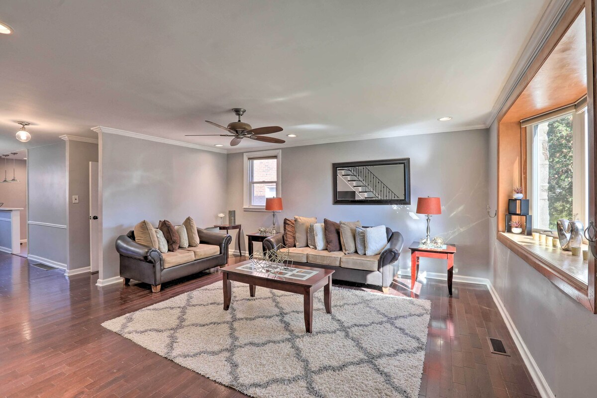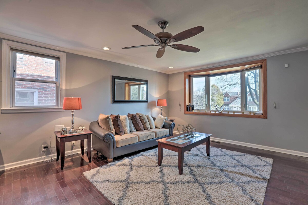 Pets Welcome w/ Fee | Quiet Neighborhood | In-Unit Laundry Nestled near Chesnut Hill, this 2-bed, 2.5-bath vacation rental offers a quaint home base. Complete with a fully equipped kitchen, 3 Smart TVs, and an office for remote work, this Philadelphia house has everything you need for a seamless stay. Going out? Brush up on your history knowledge at local museums or explore the shops at Reading Terminal Market. No matter the reason for your visit, you’ll leave with lasting memories! -- THE PROPERTY -- LIC-898422 SLEEPING ARRANGEMENTS - Bedroom 1: 1 queen bed - Bedroom 2: 1 queen bed MAIN FEATURES - 3 Smart TVs - 2 living areas - Office w/ desk - Dining table - Jetted tub - Ceiling fans KITCHEN - Fully equipped w/ cooking basics - Dishware/flatware - Drip coffee maker, electric kettle - Knife block GENERAL - Free WiFi - Central air conditioning/heat - Linens/towels, hair dryer - Washer/dryer, laundry detergent, iron/board FAQ - Exterior security camera (facing driveway & street) - Pet fee (paid pre-trip) ACCESSIBILITY - 3-story property, stairs required - All bedrooms on top floor PARKING - Garage (1 vehicle) - Driveway (1 vehicle) - Free street parking -- THE LOCATION -- - 3 miles to Wissahickon Valley Park - 10 miles to Philadelphia Zoo, Philadelphia Museum of Art, The Franklin Institute - 12 miles to Liberty Bell & Independence National Historical Park - 11 miles to Reading Terminal Market - 14 miles to Rivers Casino Philadelphia & Museum of the American Revolution - 19 miles to Philadelphia International Airport -- REST EASY WITH US -- Evolve makes it easy to find and book properties you'll never want to leave. You can relax knowing that our properties will always be ready for you and that we'll answer the phone 24/7. Even better, if anything is off about your stay, we'll make it right. You can count on our homes and our people to make you feel welcome — because we know what vacation means to you. -- POLICIES -- - No smoking - Pet friendly w/ $40 fee (+ fees & taxes) - No events, parties, or large gatherings - Additional fees and taxes may apply - Photo ID may be required upon check-in ADDITIONAL INFORMATION - This 3-story property requires stairs to access. All bedrooms are located on the top floor - Your safety matters. This property features 1 exterior security camera located on the garage, facing outward toward the driveway and street. It does not look into any interior spaces. The camera records video and sound when activated by motion Our prices include all fees. No hidden fees.