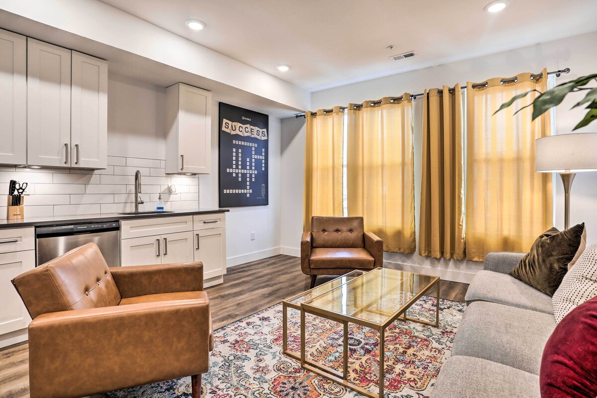 Take on Philadelphia with this stylish vacation rental to live among all of the historical, modern, and sought-after hot spots you’ll want to see. From the US Mint to the Edgar Allan Poe House to Franklin Square, this 1-bed, 1-bath unit makes it easy to pivot from rest to exploration. Use the fully equipped kitchen, laundry area, flat-screen cable TV, and central A/C to make you and your furry friend’s day-to-day as seamless as possible — you’ll even be within walking distance to Fairmount Park. -- THE PROPERTY -- Flat-Screen Cable TV | Central A/C & Heating | Pet Friendly w/ Fee Whether you’re a college student attending one of the local universities or a city lover hoping for a month-long excursion, this urban residence has you covered. Bedroom: Queen Bed INDOOR LIVING: 4-person dining table, walk-in closet KITCHEN: Fully equipped, cooking basics, dishware & flatware, microwave GENERAL: Free WiFi, washer & dryer, towels & linens, keyless entry, intercom system w/ video FAQ: Step-free entry, stairs to bedroom & bathroom, 3 exterior security cameras (facing out) PARKING: Free street parking (first-come, first-served) ADDT’L ACCOMMODATIONS: Two additional properties are available on-site, each with separate nightly rates: a 2-bedroom for 4 guests, and a 1-bedroom for 2 guests. If you would like to reserve multiple rentals, please inquire for more information prior to booking -- THE LOCATION -- PHILLY EXCLUSIVES: Philadelphia Museum of Art (0.7 miles), The Met Philadelphia (1.1 miles), Philadelphia Zoo (1.2 miles), The Franklin Institute (1.3 miles), Please Touch Museum (1.8 miles), Reading Terminal Market (2.3 miles), Franklin Square (2.6 miles), Philadelphia’s Magic Gardens (3.0 miles), Elfreth’s Alley (3.2 miles), Bluecross RiverRink (3.7 miles), Adventure Aquarium (5.3 miles) FAMOUS HISTORICAL STOPS: Edgar Allan Poe House (2.1 miles), Independence National Historical Park (3.1 miles), Independence Hall (3.1 miles), Benjamin Franklin Museum (3.1 miles), US Mint (3.1 miles), Betsy Ross House (3.2 miles), Museum of the American Revolution (3.3 miles), Battleship New Jersey (5.4 miles) GREEN SPACES: Fairmount Park (1.0 miles), Love Park (1.8 miles), Dilworth Park (2.0 miles), Rittenhouse Square (2.2 miles), Spruce Street Harbor Park (4.3 miles), FDR Park (6.9 miles), Wissahickon Valley Park (8.9 miles) COLLEGIATE LIFE: Temple University (1.4 miles), Drexel University (1.7 miles), University of Pennsylvania (2.3 miles) AIRPORT: Philadelphia International Airport (10.2 miles) -- REST EASY WITH US -- Evolve makes it easy to find and book properties you'll never want to leave. You can relax knowing that our properties will always be ready for you and that we'll answer the phone 24/7. Even better, if anything is off about your stay, we'll make it right. You can count on our homes and our people to make you feel welcome — because we know what vacation means to you. -- POLICIES -- - No smoking - Pet friendly w/ $75 fee (+ fees & taxes, 1 max) - No events, parties, or large gatherings - Additional fees and taxes may apply - Photo ID may be required upon check-in - NOTE: Although this home offers step-free entry, stairs are required to reach the bedroom and full bathroom - NOTE: Your safety matters. This property features 3 exterior security cameras. Camera 1 is located at the building’s front entrance, facing outward toward the entryway. Camera 2 is located inside the building’s front entrance and faces the internal entry/hallway. Camera 3 is located in the hallway and faces up towards the staircase. They do not look into any interior spaces. The cameras record video and sound when activated by motion Our prices include all fees. No hidden fees.