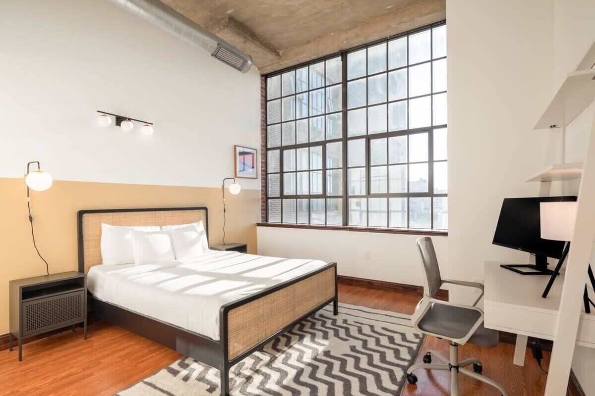 Summary: Chic 3-Bedrooms Loft in Liberty-style building, with discounted on-site parking. At this airy and light-filled Sosuite, you'll love the oversize windows, classy design, and the super comfy common space sporting a 49\ ll absolutely love the outdoor space for your morning coffee. Conveniently located, this Sosuite is a 3-minute ride to the Center City. Boasting a unique style — you will love our incredibly comfy bed + luxe sheets. The Space: Experience Sosuite: hotel-level amenities with the perks of a home, all paired with an unmatched guest experience. Sosuites are designed to reflect the history and character of the exciting neighborhoods in which they are located, providing an elevated stay in some of Philadelphia re WFH-ready - Luxe bath amenities by Beekman 1802 - Comfy mattress & soft cotton sheets - In-unit washer-dryer Upon booking, you’ll get access to Sosuite s fitness center. The Neighborhood: Callowhill s blend of history and progress. Top 5 Attractions:The Rail Park Underground Arts Vox Populi Gallery The Prohibition Taproom Love City Brewing Company Getting Around: Philadelphia, one of the country’s most walkable cities, is incredibly easy to navigate either by foot or by public transportation. That just leaves one question: Where to park the car? ON-SITE PARKING: The building offers paid parking starting at $25/day (discounts for longer stays) We’ll share the link to reserve your spot with them once you book. ON-STREET PARKING Philadelphia has thousands of metered spots throughout the city, perfect if you only plan to park for an hour or two. The area near this unit usually has a little street parking available. Be sure to read all parking signs very carefully before leaving your car to avoid ticketing and towing during hours in which parking may be prohibited. OTHER OPTIONS For moving around, you d be happy to share discount codes with you! Other Things to Note: - The gym is open from 7 am to 9 pm - There is an accessible ramp at the left-hand side entrance of the building - Parking details will be provided after booking. The gated lot has covered and uncovered options, and you are allowed to come and go as needed during your stay. Rates start at $25-$10(discounts for longer stays, with a cap of $300 per month) - Extra cleaning services can be requested during your stay for an additional fee - Pets are welcome for $25/night max 2 pets(capped at $250/month) - A $250 deposit may be collected before check-in, and ID collection/waiver may be required. Reservation are not eligible for refunds if these steps are not completed. Interaction with Guests: If you have any questions or concerns throughout your stay, we ,