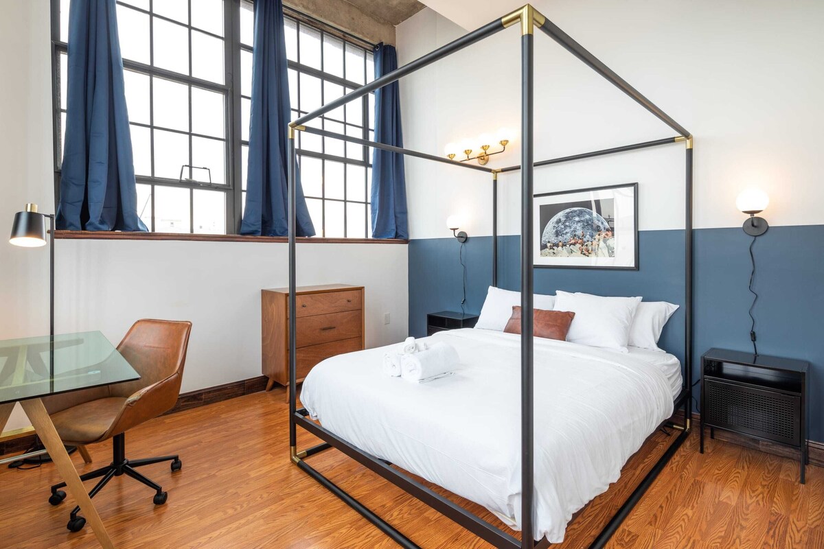 Summary: Step back in time at Sosuite at Independence Lofts, a historical building once home to a printing press factory in the 1900s, recently converted to unique living spaces. Enjoy brunch at the on-site restaurant, enjoy a stroll at the Rail Park, and hop on a short car ride to everything the city has to offer. This Sosuite features dedicated workspaces, fully-equipped kitchen, and everything you need for a couple of days or a year-long stay. The Space: Experience Sosuite: hotel-level amenities with the perks of a home, all paired with an unmatched guest experience. Sosuites are designed to reflect the history and character of the exciting neighborhoods in which they are located, providing an elevated stay in some of Philadelphia's unique buildings. Amenity highlights: - Convenient On-Site Parking (Fee Applies) - 24/7 on-site security - Gym open seven days a week - Lobby mural by local artist - Pet-friendly: bring your furry friend The Sosuite standard: - Fully-equipped kitchens - Keyless smart check-in - Smart TVs to binge the latest show - Fast wifi, we're WFH-ready - Luxe bath amenities by Beekman 1802 - Comfy mattress & soft cotton sheets - In-unit washer-dryer Upon booking, you’ll get access to Sosuite's mobile guide to Philadelphia’s best-kept secrets and hidden gems, as curated by locals. You will be close to so much that Philly has to offer: → Across the street from Union Transfer → 15-min walk to Reading Terminal Market → 9-min drive to Rittenhouse square Please note that we utilize hotel like room types. This means that this listing represents more than one apartment and your final unit might have minor deviations from the photos above. All items (down to the number of forks and knives), room size, amenities, quality, etc. are exactly the same, but there may be minor layout or furnishing differences. Guest Access: You will have exclusive, private access to your Sosuite apartment. In addition, you will have access to the lobby, which was designed by renowned local artist Natalie McDonald, and the building's fitness center. The Neighborhood: Callowhill's transformation from industrial hub to a lively arts district is a Philadelphia success story. This neighborhood, with its historic lofts and contemporary murals, offers an urban canvas to both residents and visitors. Its streets are alive with music venues, art galleries, and innovative eateries, making it a cultural hotspot. The Reading Viaduct, an elevated green space, symbolizes Callowhill's blend of history and progress. Top 5 Attractions:The Rail Park Underground Arts Vox Populi Gallery The Prohibition Taproom Love City Brewing Company Getting Around: Philadelphia, one of the country’s most walkable cities, is incredibly easy to navigate either by foot or by public transportation. That just leaves one question: Where to park the car? ON-SITE PARKING: The building offers paid parking starting at $25/day (discounts for longer stays) We’ll share the link to reserve your spot with them once you book. ON-STREET PARKING Philadelphia has thousands of metered spots throughout the city, perfect if you only plan to park for an hour or two. The area near this unit usually has a little street parking available. Be sure to read all parking signs very carefully before leaving your car to avoid ticketing and towing during hours in which parking may be prohibited. OTHER OPTIONS For moving around, you'll also find several bus stops, bike ride-sharing stations, and subway stations. Otherwise, we recommend getting around the city using Uber or Lyft - its fairly affordable & we'd be happy to share discount codes with you! Other Things to Note: - The gym is open from 7 am to 9 pm - There is an accessible ramp at the left-hand side entrance of the building - Parking details will be provided after booking. The gated lot has covered and uncovered options, and you are allowed to come and go as needed during your stay. Rates start at $25-$10(discounts for longer stays, with a cap of $250 per month) - Extra cleaning services can be requested during your stay for an additional fee - Pets are welcome for $25/night max 2 pets (capped at $250/month) - A $250 deposit may be collected before check-in, and ID collection/waiver may be required. Reservation are not eligible for refunds if these steps are not completed. Interaction with Guests: If you have any questions or concerns throughout your stay, we're happy to help you. We are available in real-time from 9am to 1am 7-days a week. Don't hesitate to send us a message, a text or to give us a call. Our prices include all fees. No hidden fees.