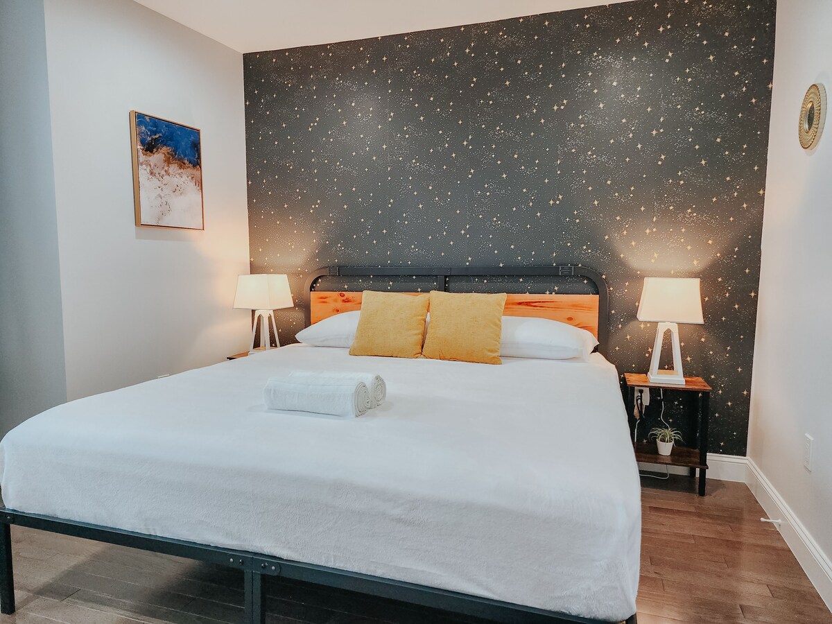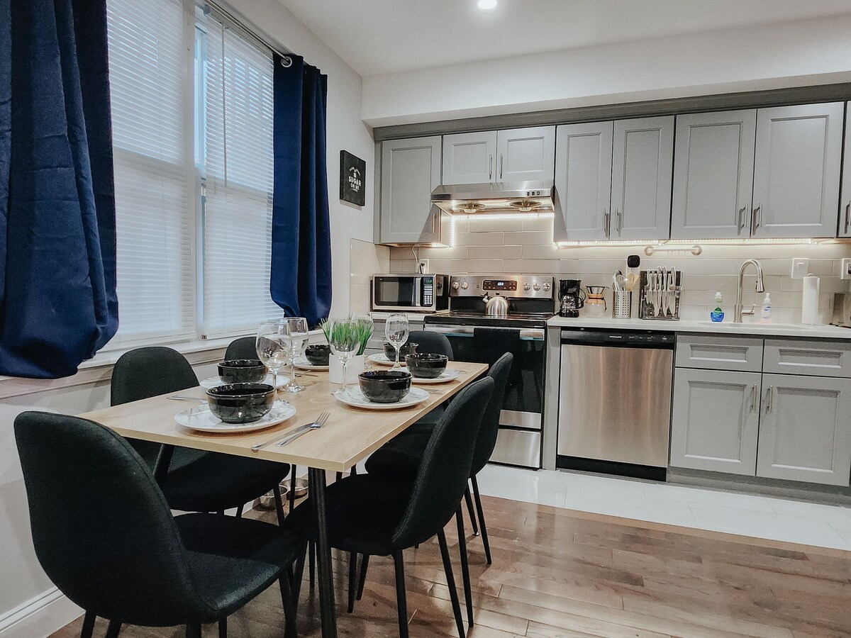 This modern apartment features 3 bedrooms, 3.5 bathrooms, a home theater, and 3 king-size beds. The main living areas are conveniently located on the first floor. Just a short 3-minute drive to the Convention Center, Chinatown, Reading Terminal Market, shopping malls, bars, restaurants, and lounges, this stylish apartment offers the perfect retreat after a day of exploring Philadelphia’s top attractions. Enjoy top-of-the-line amenities and a prime location for a comfortable and convenient stay. ★HOME HIGHLIGHTS★ • 120\ 4K TVs in all 3 bedrooms • 3 Bedrooms = 3 King Beds • 3.5 Bathrooms = 3 Walk-in showers • 2 master bedrooms with en-suite bathrooms • Extra Beds = 1 Pull Out Sofa Bed • Pool/Ping-Pong Table Combo • Fully equipped kitchen • Jenga Game • Washer & Dryer • Rainfall Shower • Central AC/Heat • Blackout Curtains • Small Backyard ★95 Walk Score ★95 Bike Score ☞ The unit is on the first floor, which contains no bedrooms. There are two bedrooms on the second level, accessible by a single flight of stairs. Additionally, there is another bedroom on the basement level, reached by another single flight of stairs. ★PARKING INFO★ Free street parking is available on the same block, though at times, you may need to park up to two blocks away. ★PETS WELCOME★ We welcome your furry friends with a $70 pet fee per pet, per stay (maximum of 2 pets). Please ensure you add your pet to the pet count when booking. Let us know in advance if you're bringing a pet. We ask that pets remain well-behaved. ★DEDICATED SUPPORT TEAM★ Our team is available to assist you! Whether you have a question about the home, need recommendations for the best local spots, or require any assistance during your stay, just send us a message—we’re happy to help. We also have a dedicated maintenance team and professional cleaners on standby, ensuring any issues are resolved quickly to make your stay as smooth as possible. ★OTHER THINGS TO NOTICE★ Please note that there is a lounge located across from this unit. On weekends, noise from the establishment may continue until 3 AM. This accommodation may not be ideal for light sleepers. Our prices include all fees. No hidden fees.