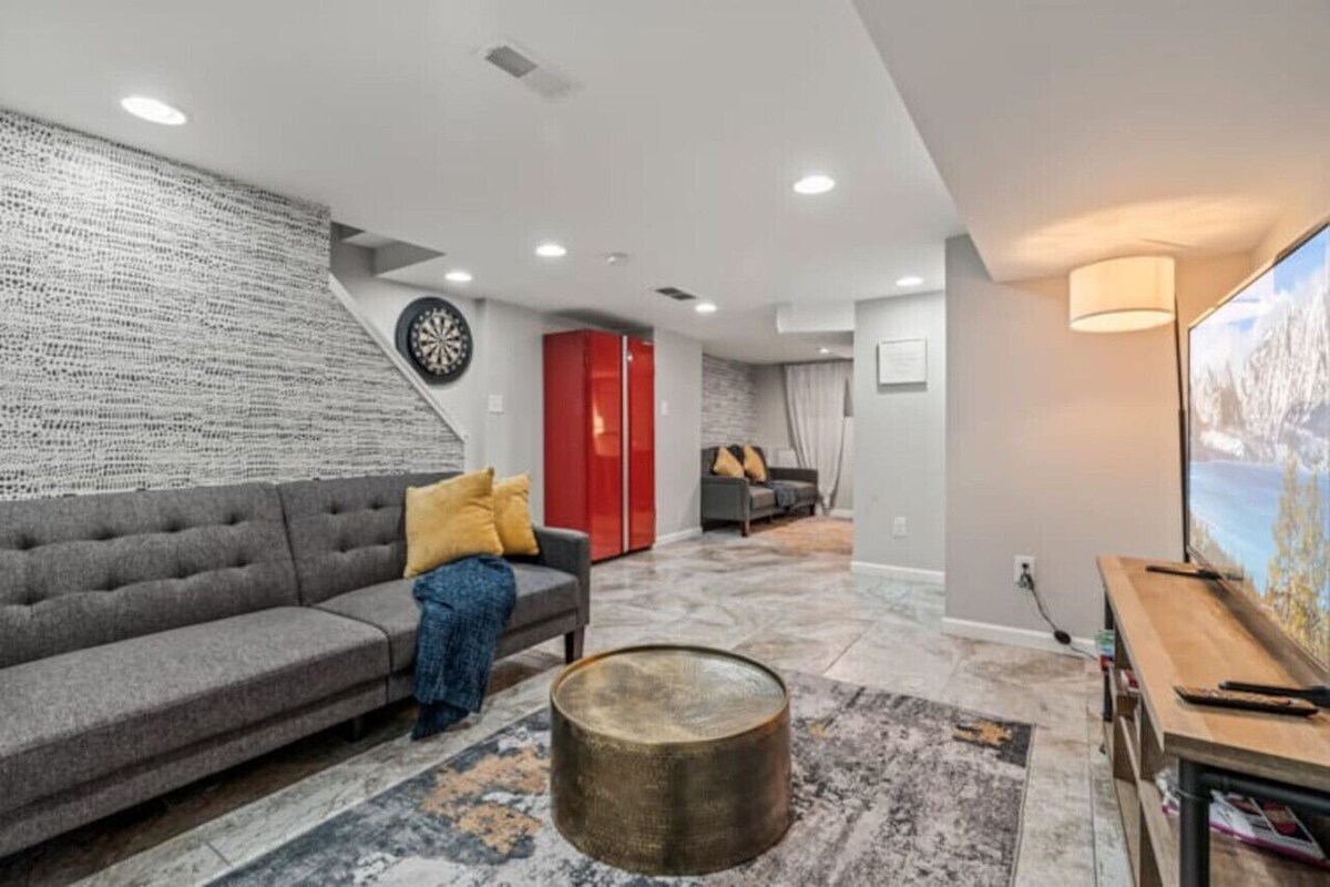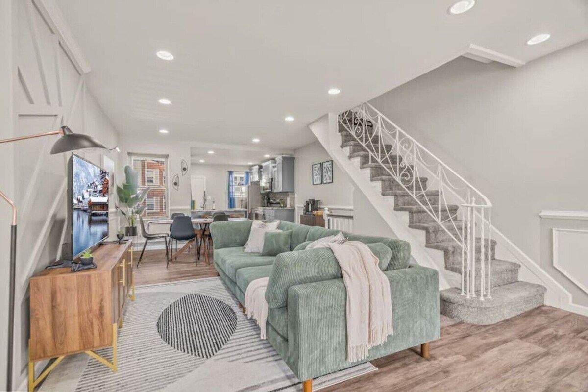 What you see is what you will get. Don`t simply travel to some `house` you are now entering a vibe. Uptown Gem is more than just a place to rest your head. Book now! Early Check-in is subject to availability and arrangements should be made prior to your arrival. For this spacious home, you`ll find four comfortable private sleeping quarters designed for rest and relaxation, along with three stylish washrooms complete with safety grab bars and modern fixtures. Each sleeping area is thoughtfully designed to provide privacy, while the wash spaces offer convenience with ample room for daily routines. This layout provides an ideal balance of shared and private areas for family or guests. Key Features: - Smart Lock Entry (front/back) - Five smart TV`s - Walk-in Spa Shower w/ safety grab bars. - Hair Dryer - Board & Card games (all ages) - Complimentary snacks & coffee - Ninja Espresso & Coffee Barista Machine - Ninja Blender - Chefman TurboFry XL Air Fryer - KOOC 8.5 qtrs. Croc Pot - Gourmet Long Slot 4 slice toaster - Granite Coating Induction 20pc pot set - Breakfast bar with two barstools - Dining table that fits up to six people - Four sturdy portable dinner tables - Two desks for remote work - Deck - BBQ propane grill w/ grilling utensils - Outdoor furniture - Three designated outdoor smoking areas - Private parking for 1 vehicle - Free street parking Located in a quiet and friendly neighborhood, this house is a perfect fit for big families visiting the city, business travelers, sports lovers, and healthcare professionals looking for a comfortable and spacious place to call home during their stay. Not to mention, we are also pet-friendly so bring the furry pal along! Commuters will appreciate the close proximity to routes 309, 611, 1, and I-276, ensuring a seamless journey wherever life takes you. Guests may access the entire home except for the red storage unit in the basement which will remain locked at all times. There will be limited to no interaction with host, unless in the event of an emergency. We ask that you show respect and care for our home at a level that is unquestionable and that highly displays couth and character. Also, please do not remove any items from the property without our permission or that you did not bring with you. Toiletries and snacks are complimentary. -This is a residential area, therefore parties and large social events are strictly prohibited. -Quiet hours from 10pm – 7am (inside and outside the property) -No smoking or vaping inside or in the front of the property. -No shoes worn inside the property. -No open flames or candles inside -No tampering with security cameras. -DO NOT for any reason or any length of stay get mail or packages sent to the property. -Report damages/issues immediately. Our prices include all fees. No hidden fees.