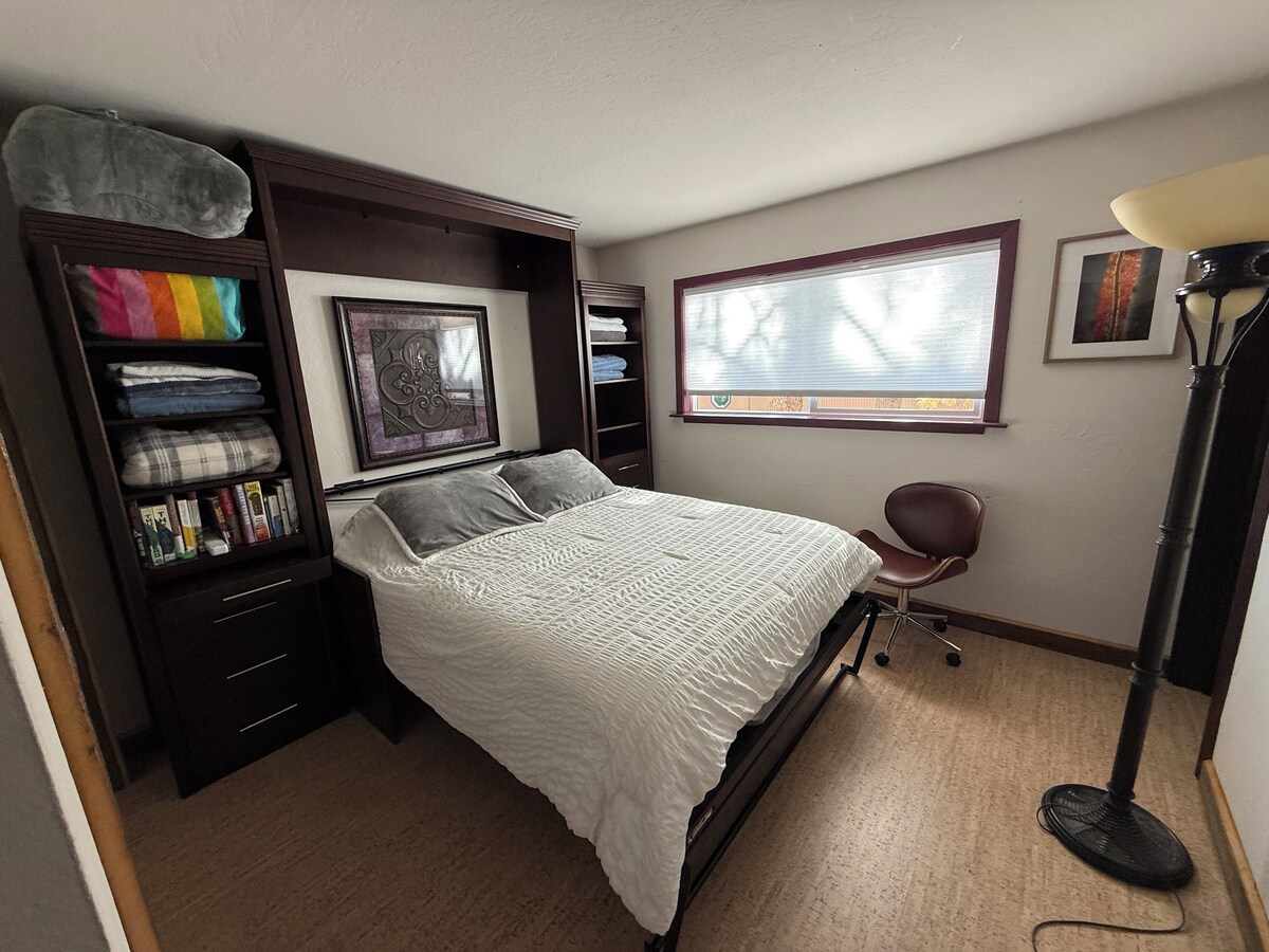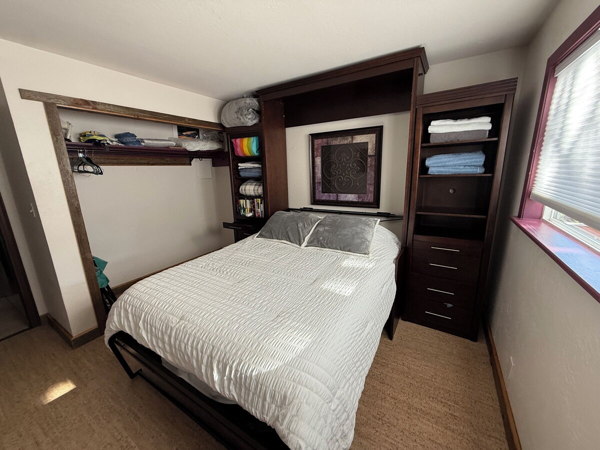 Escape to this charming condo in picturesque Stateline. This adorable property features 2 bedrooms with a queen and king bed, 2 bathrooms with luxurious amenities like a bidet and hair dryer, and an additional living room space with a child bed. Guests can enjoy the wonderful views and amazing comfort this condo provides. We think our place will help you experience everything Stateline has to offer. This unique condo has great views of the Lake Tahoe Basin, as well as Heavenly Nevada, and more! Very custom with high end finishings. Has flat top grill, pellet grill, and gas firepit so you can enjoy the views and cook at the same time. Open living space allows great enjoyment of the views through the 12 foot glass door wall to the 22x12 deck. 1 King bed, and 1 Murphy bed Queen that converts to a desk as needed. All electrics and appliances are high end and new within the last few years. Our prices include all fees. No hidden fees.