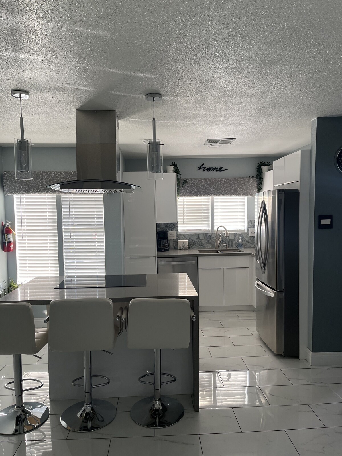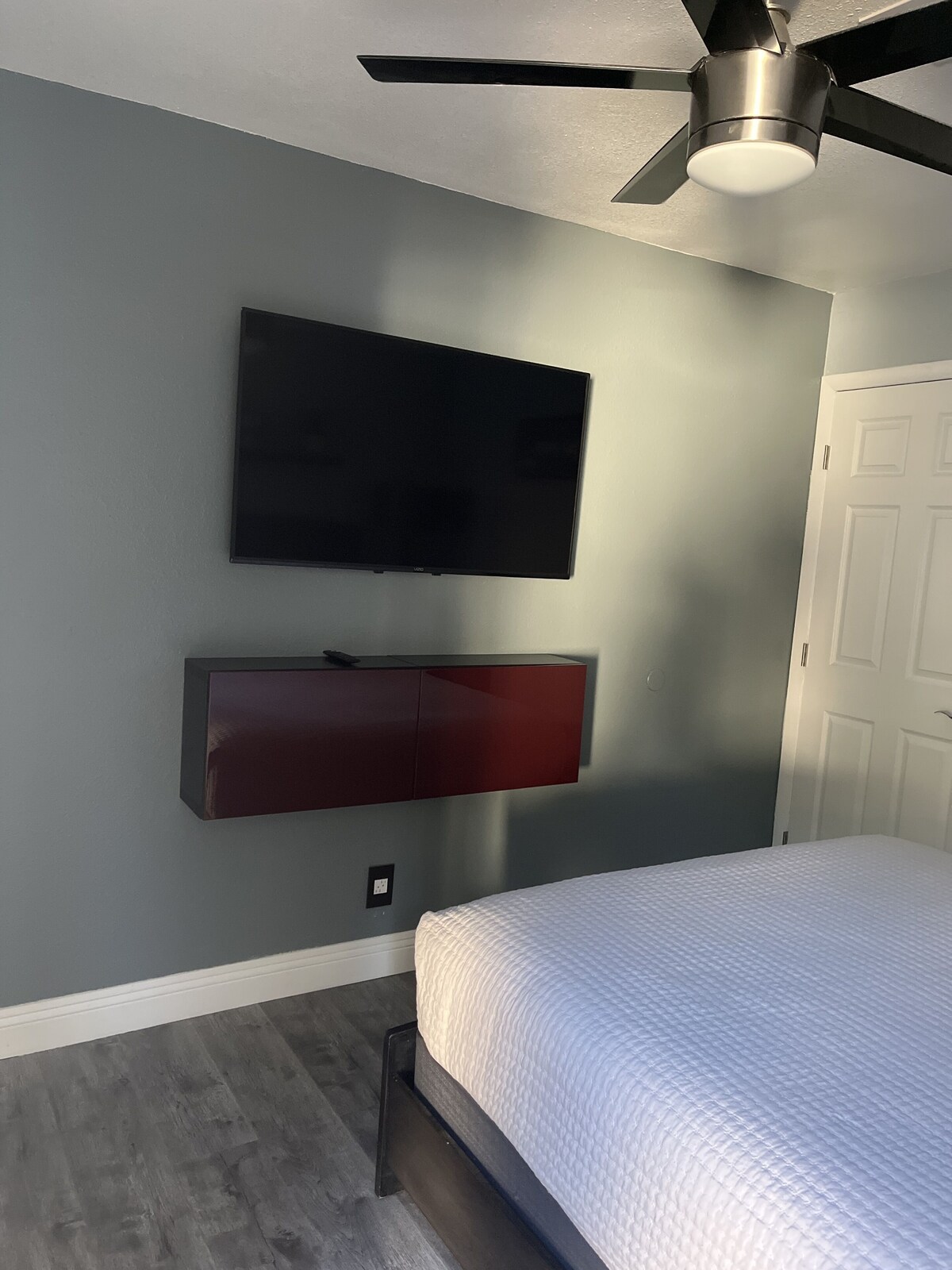 My cozy condo has all new furniture and contemporary stuff, stainless still appliances, we have a little bar with all the wine glass, Nice living room with a 75inch TV, Your room has a fan with control remote, extra lamp, with your nightstand, king bed and a 65inch TV, I have Netflix, local channels, we have a nice living room and a little table and fan , we have a new oven, also a dishwasher, everything in a little place. Our prices include all fees. No hidden fees.