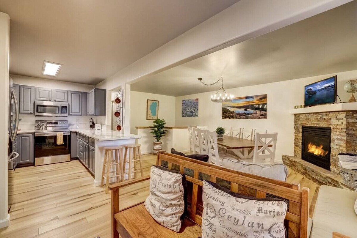 Comfy Tahoe getaway with peekaboo lake view at the top of Kingsbury grade walking distance to shuttle to ski Heavenly, hiking/mountain biking trails. Short drive to casino nightlife and all summer lake activities! 2 Gas fireplaces, game room with N64, dining table to seat 10, fully equipped kitchen & 3 bathrooms, WiFi, cable, coffee provided. HOA pool & hot tub 2 mins walk down the street. 4 Queen beds, 2 twin lofted beds and sofa bed. On the bus route. *2 sets of stairs required. VHRP#08401815 3 level condo with 4 bedrooms with queen size beds. The family room has a queen sized pull out sofa and Gas fireplace, video game room with N64 and 100+ games! Features: -Essentials provided -Fully stocked kitchen PLEASE NOTE THIS UNIT IS ON THE 2ND FLOOR AND REQUIRES GOING UP A FLIGHT OF STAIRS TO ACCESS UNIT* full access to interior of property I use a digital lock system for check-in so you can check-in at your convenience anytime after 3pm. You will have complete privacy during your stay, but I will be available any time if you have any questions or need assistance. top of Kingsbury grade near stagecoach lodge parking is shared in the HOA parking lot. we are at the top of Kingsbury dr. Essentials Provided: Linens, towels, shampoo, body wash, hand soap, TP, paper towels, coffee, tea, salt, pepper, cooking spices, dish soap, and sponge. The parking lot can get full on weekends and may require parking at the HOA pool (3 min walk down the street) conditions can be icy in the winter and it's about 100ft walk from the parking to the condo building. 2 set of stairs required to access condo. There are no full refunds for circumstances beyond our control to include wildfire smoke, winter storms, etc. No smoking, $100 if it smells like smoke Our prices include all fees. No hidden fees.