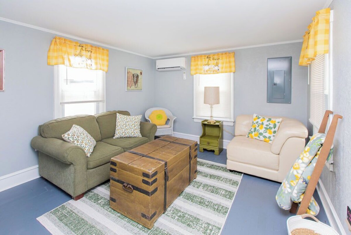 Summary: Bee Happy Cottage is a fun, relaxed space that shares the property with The Blue Fig. We are pet friendly including a fenced-in yard, parking and all the modern conveniences. Bee Happy Cottage is part of the Turtle Getaways collection of premier vacation properties. The Space: Bee Happy Cottage has been newly renovated adding central air conditioning throughout the home, washer/dryer, dishwasher, range, refrigerator and microwave. The corner bench and table in the kitchen are a great place for morning coffee or playing games with the family. The living area has comfy seating facing the wall mounted TV. There is 1 designated parking spot on the property and a fenced-in yard. Bee Happy Cottage shares the ample yard with The Blue Fig. Bee Happy Cottage and The Blue Fig can be rented together for a shared vacation experience with friends and family. The yard has a shared grill, outdoor table, chairs and umbrella for outdoor dining. Your reservation includes linens, towels, beach towels, beach chairs, beach cart and an umbrella. There is also an outdoor shower to ensure you have a place to wash off the sand. One and a half blocks to the beach and boardwalk is the perfect location for your summer vacation. Guest Access: Guests will be provided with a unique door code prior to check-in. In addition, the property manager, Denise, greets all our guests to acquaint them with the property. The Neighborhood: The Bee is in a family friendly neighborhood one and a half blocks to the beach and boardwalk. Getting Around: The Bee is in walking distance to restaurants, amusements rides on the boardwalk, and the beach. We are a short drive to Cape May and other shore communities. Other Things to Note: Note: if you have any sensitivity to pet allergens please be aware that pets are regularly present in this home. There is a $50 per pet per stay fee. If you have more than one pet a separate invoice will be issued. Note: The reservation fee collected at the time of booking is non-refundable. Check our website, www turtlegetaways com, for all the local attractions in Wildwood and the surrounding communities. See all Turtle Getaways offerings by searching on property ID: The Blue Fig: 2825372 Bee Happy Cottage: 3726322 The Westley House: 2193159 Cottage at Westley House: 3726275 Kiwi’s Cottage: 2009289 Darcy’s Beach House: 2010342 PG’s Bungalow: 2011597 Our prices include all fees. No hidden fees.
