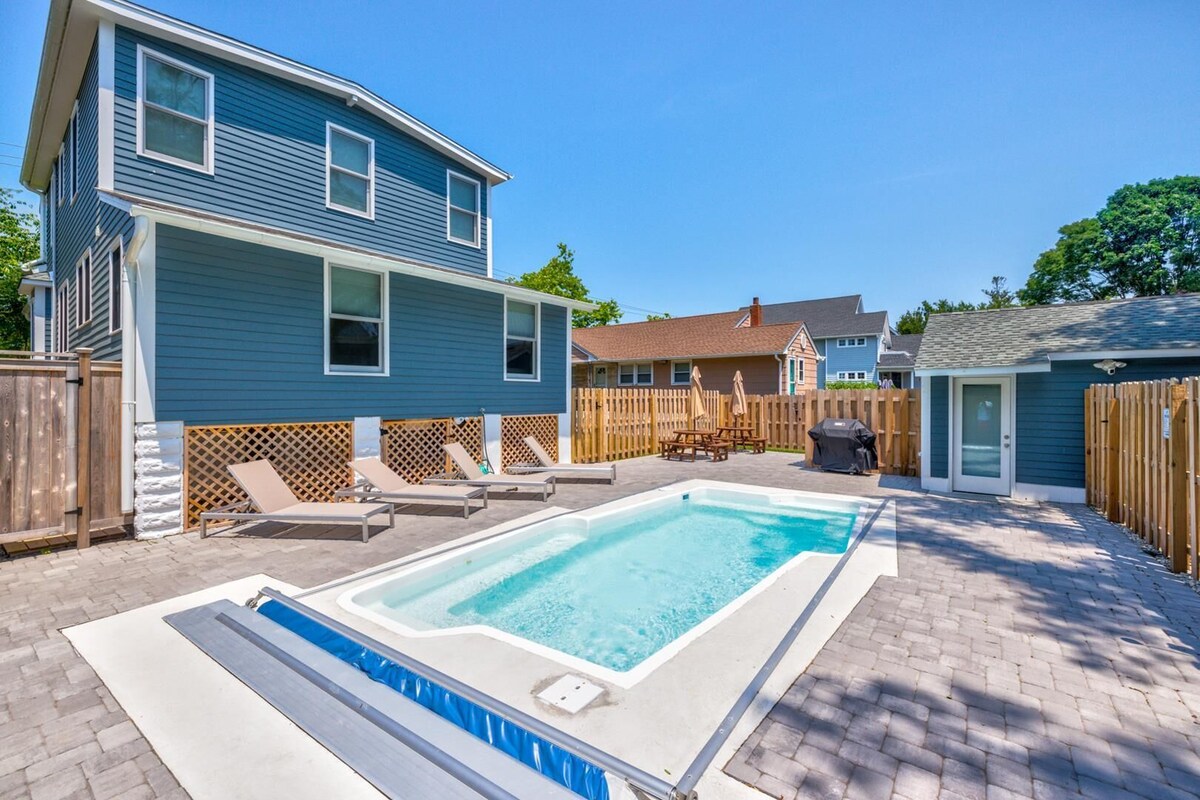Beautifully renovated 6-bed/4.5bath home with inground pool! Bright & airy, 2 separate hangout spaces, front porch, rear patio, outdoor shower, and 4 off-street parking spots. Only a 10 minute walk to the Madison Ave. beach and the shopping area, or a short bike ride or drive. Bring your pooch because it's dog-friendly, too, with a fully fenced rear yard! The Sunday-to-Sunday booking allows you to avoid the Saturday arrival traffic. *Bonus- 4 offstreet parking spaces provided on property* A cleaning fee of $285 will be charged for stays less than a week, and there is a $150 pet fee for the 1st dog, $100 for the 2nd. Also, ask about the option to have the pool heated for a $200 fee. Our prices include all fees. No hidden fees.