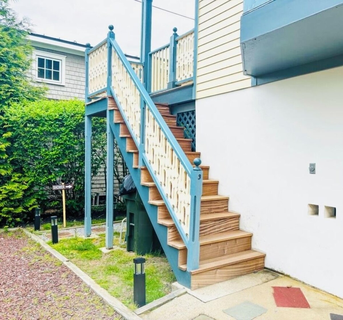 Enter the first floor from the private rear deck. The first floor has a spacious living room, kitchen, and a full bathroom with a shower. Second floor consists of 2 bedrooms and full bathroom with free standing washer and dryer. On the third floor there is a bonus room, perfect for the kids to play or an extra space for the adults to hideaway. The oversized car-and-half garage provides plenty of space for parking and storage of beach equipment, bikes, and yard games. There is an additional reserved parking spot in the driveway. A private outdoor shower is located on the side of the house.