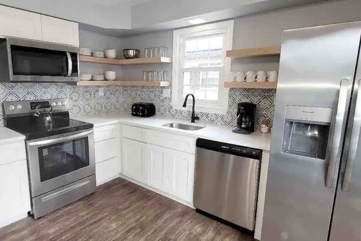 Have fun with the whole family at this newly renovated Super Host managed property that is less than a half of a block to the bay. Dog friendly with a fully fenced yard. This stylish home has 2 bedrooms with queen beds and full bathroom on the first floor and the primary bedroom with king size bed and bunkroom with 2 twin over full bunkbeds on the second floor along with bathroom. Newly renovated kitchen is well equipped and opens to the spacious deck with grill and alfresco dining. You will have access to entire home and fenced in back yard. Entire house 4 bedrooms, 2 full baths, eat in kitchen, living room, outdoor deck, fenced in backyard with firepit and BBQ grill We are available 7 days a week from 8AM to 8PM for questions and will provide phone number for emergency contact. Quiet neighborhood just half a block from the Delaware Bay Beaches and the best sunsets on the east coast. 15 minutes to Historic Cape May and about 20 minutes to the Wildwoods. Close to Vineyards, Wineries, Distilleries and great restaurants. A short walk to the beaches of the bay. You’ll need a car or bike to get most places. Uber and Lyft are available. Our prices include all fees. No hidden fees.