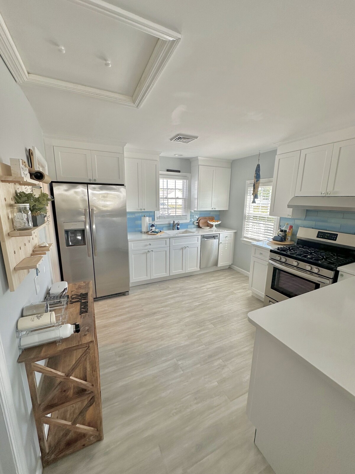Sunset Aware Cottage is a 3 bedroom 2 bath one level home that can sleep up to 10 people. This quaint cottage originally built in the 1950s has been fully renovated and furnished in 2024. It expresses a casual comfort filled with design touches that are inviting, familiar and boast all amenities. We want our guests to feel special on their vacation. Living room and all bedrooms have their own Roku smart TV, plenty of cozy blankets and pillows, new mattresses and books and games for all ages. Kitchen is equipped with all basic supplies and gadgets for those who like to cook, has a stocked coffee/tea bar and a wine/cocktail unit filled with bar accessories (shaker, muddler) and plenty of drink/plasticware. Just bring your favorite cocktail. It has a fenced in yard for your well behaved and loved pets as well as inviting outdoor area for grilling, eating and games. Outdoor dining for 12 people, 2 lounge chairs and an accessible shed for storage. Leave the stress behind we have you covered… sheets, towels, basic toiletries and kitchen supplies to get you started. • 1 bath towel, hand towel and wash cloth per person • Bath mats and hand towels • Shampoo, conditioner, shower gel and basic toiletries • Dish detergent, sponge and paper towels • Kitchen drying mats, towels, oven mitts • Laundry detergent and fabric softener • 1 beach towel per person Provided at the house • 4 beach chairs • Cooler • Beach toys and games • Umbrella • 6 Cape May beach tags Parking spots up to 3 cars Plenty of street parking 24/7 self check-in The house has cameras including 2 ring cameras We are dog friendly house up to 1 dog per booking. We ask your dog to be on a flea and tick prevention treatment. Our prices include all fees. No hidden fees.