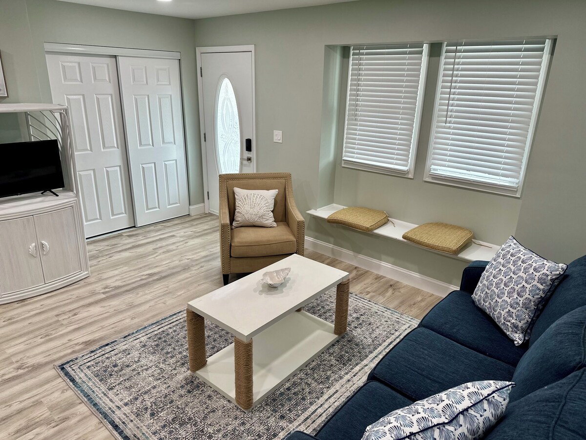 This beautifully renovated 3 bed/2 bath first floor unit offers the perfect blend of modern comfort and beachside charm. Step outside and enjoy the sandy shores or the famous boardwalk just on the next block! For a splash of fun, head over to Morey's Piers & Waterparks for a day of excitement and thrills! With prime location and endless possibilities for relaxation, dining, shopping and tons of entertainment. Full kitchen with appliances, bathroom accessories, individual room heat & AC, LINENS INCLUDED, beach umbrella, beach chairs and outside shower. The only items we haven't packed for you are your clothes! Step Outside and Explore All That Wildwood Has to Offer! This house is located on the southern tip of North Wildwood, family-friendly yet you can still walk to the heart of it all - or take the boardwalk Tramcar. Sink your toes into the soft sand and soak up the sun on the beautiful Wildwood beaches. Dog park and beach nearby for your fuzzy family members. Take a stroll down the iconic Wildwood boardwalk, where you'll find amusement rides, arcades, mini-golf, and delicious treats. Savor fresh seafood at one of Wildwood's many waterfront restaurants (see our recommendations below!). Explore the charming shops and boutiques lining the streets. Enjoy a day trip to nearby Cape May, known for its Victorian architecture and historic charm or the Cape May County Zoo Dining Delights: Wildwood boasts a fantastic selection of restaurants, from casual boardwalk fare to fine dining. Here are a few of our favorites within walking distance: Doo Wop Diner: Classic diner serving up breakfast, lunch, and dinner in a nostalgic atmosphere. Sam's Boardwalk Pizza: A Wildwood institution, known for its delicious pizza by the slice. Santucci's Square Pizza: Upside-down pizza, wings and salads The Wharf: Upscale waterfront dining with stunning views and a fresh seafood menu. Margaritaville: Enjoy a taste of paradise with beachfront dining, cocktails, and live music. Love Seafood? We love Urie's Waterfront Restaurant, Boathouse Restaurant, Rick's Seafood House to name a few! 1 parking pass for the front of the house. Additional parking on corner. Have more family members to accommodate? The upstairs unit is a 2-story 5 bed/3 bath unit or have a family reunion and rent both units for an 8 bed/5 bath property. (Message for pricing and availability) What are you waiting for? Book your unforgettable Wildwood escape today! Our prices include all fees. No hidden fees.