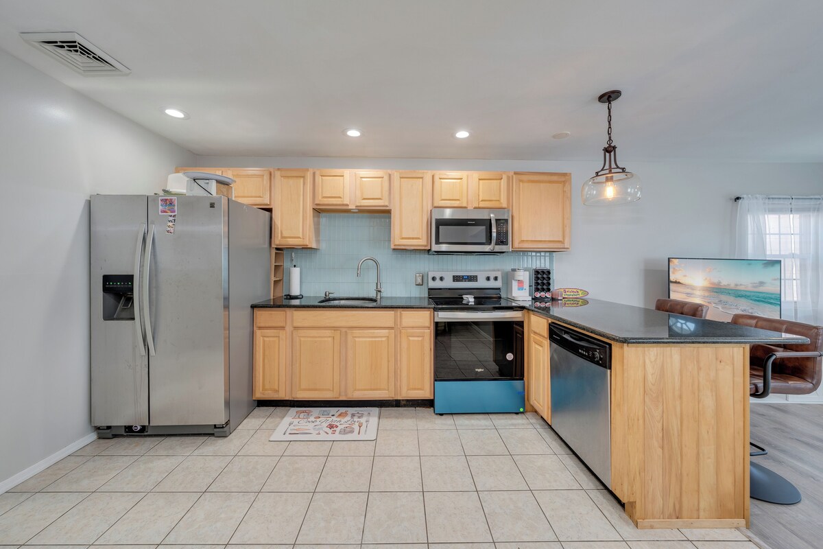 This beautiful single family house has been recently updated with all modern appliances, flooring and furniture. It’s is 4 blocks from the beach (no beach tags required). A cart, beach chairs, umbrella, toys and boogie boards are provided to have the best beach experience. If you are an early riser there are 2 adult bikes and 2 kids bikes that you can ride the famous boardwalk until 11 am. There is nightlife for all ages from restaurants to rides on one of Wildwoods 3 peers. If you prefer a relaxing night, there is a fire pit in the back yard to relax and unwind at. Every Friday night there is an impressive fire work show that can be seen from standing on the front porch. Our prices include all fees. No hidden fees.